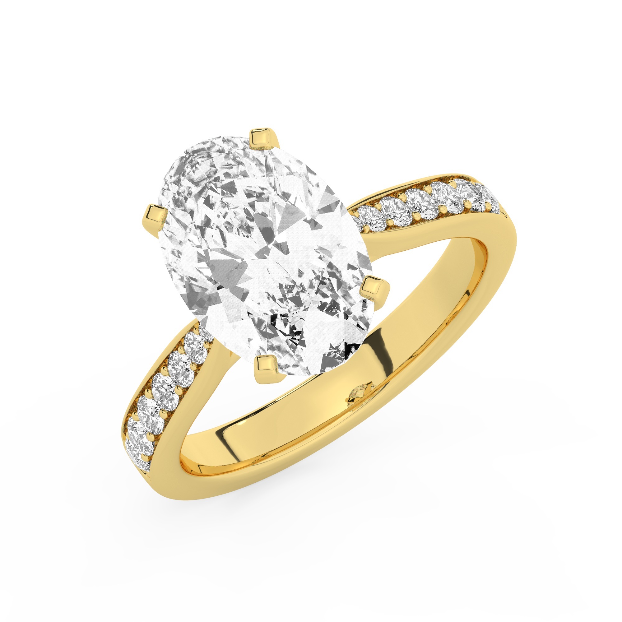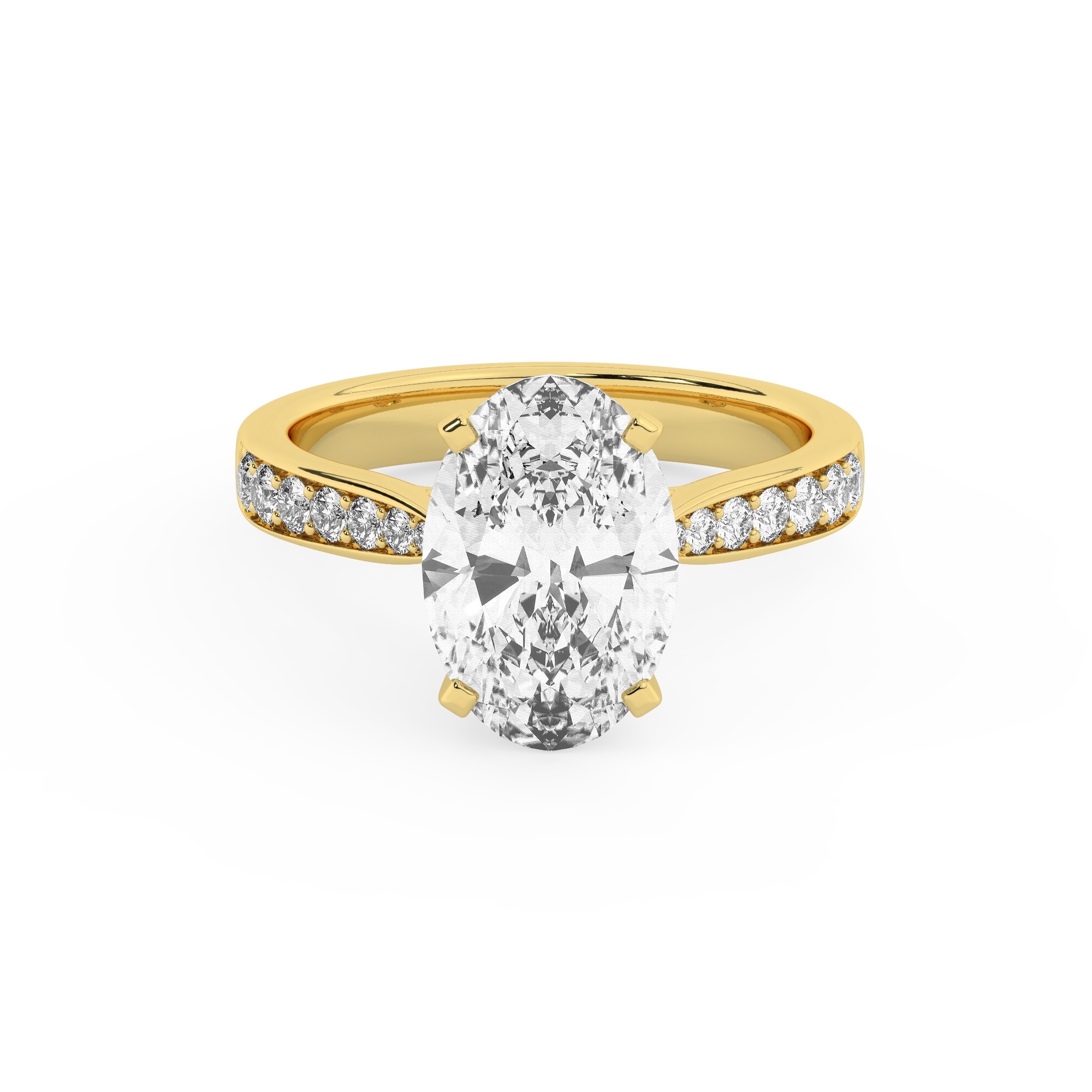 טבעת אירוסין סוליטר וזירקונים בצדדים דגם 50017 זהב צהוב 14 קראט במרכז זירקוניה 3 קראט בחיתוך אובל מסביב ובצדדים זירקונים בחיתוך עגול