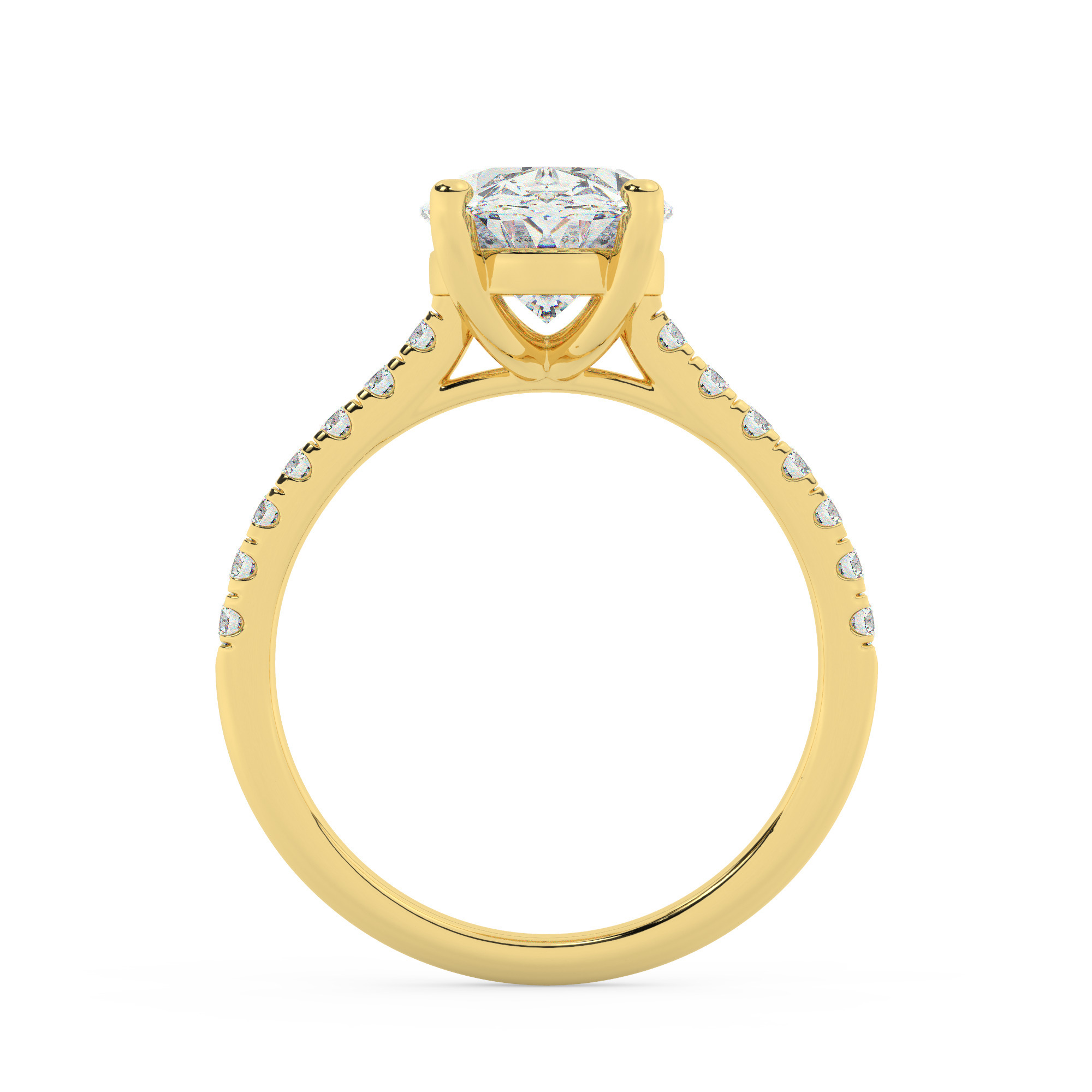 טבעת אירוסין סוליטר ויהלומים בצדדים דגם 50019 זהב צהוב 14 קראט במרכז זירקוניה 3 קראט בחיתוך אובל מסביב ובצדדים זירקונים בחיתוך עגול