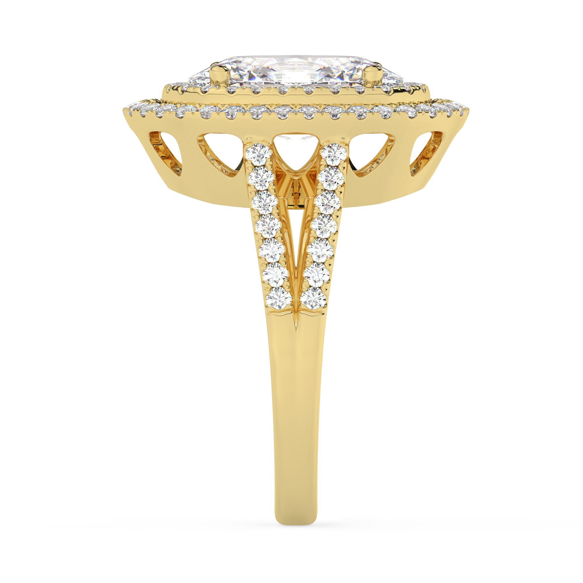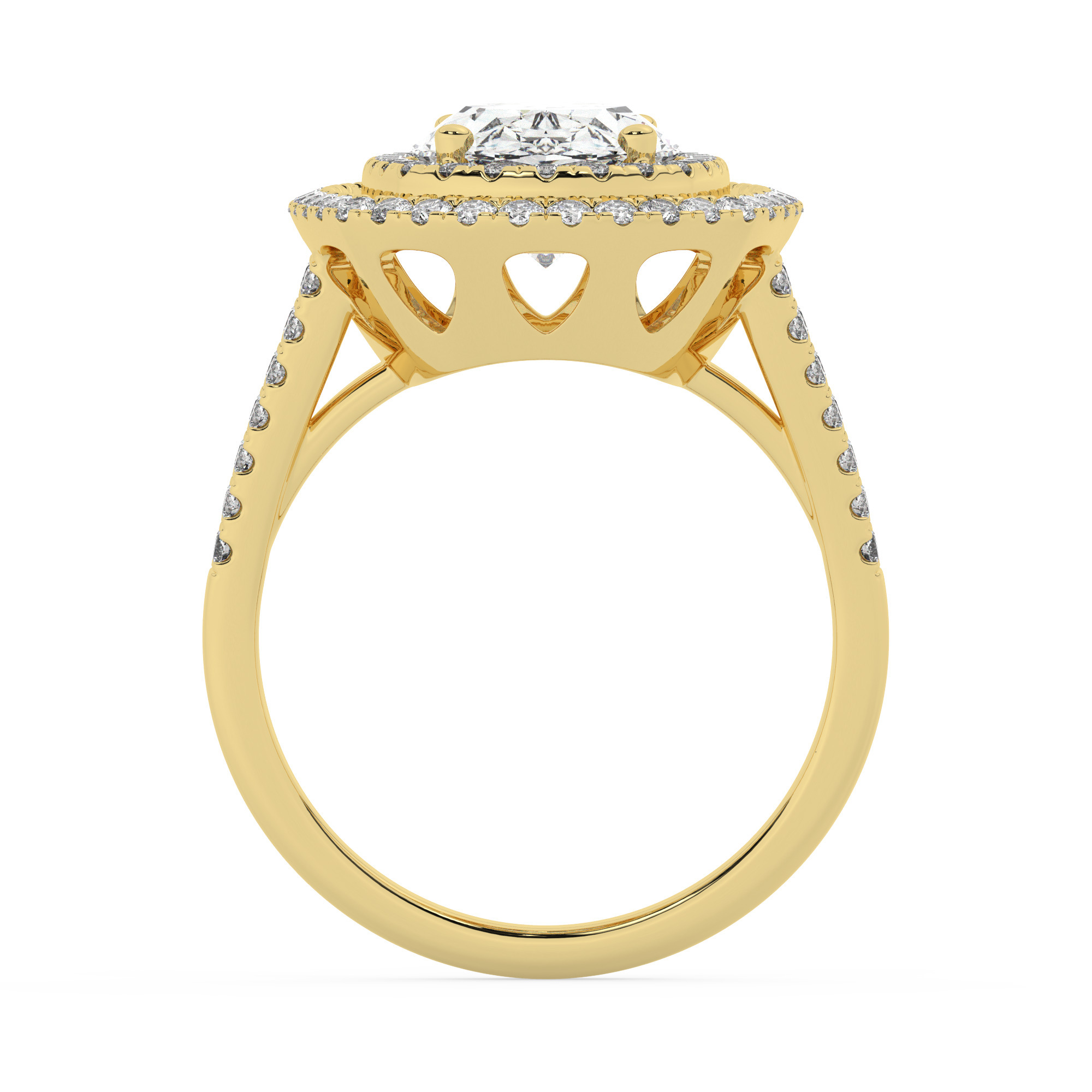 50% הנחהטבעת אירוסין היילו דגם ליטל זהב צהוב 14 קראט במרכז יהלום מעבדה 1 קראט מסביבו ובצדדים שורה של יהלומים עם תעודה גמולוגית אירופאית IGI טבעת הצעת נישואין