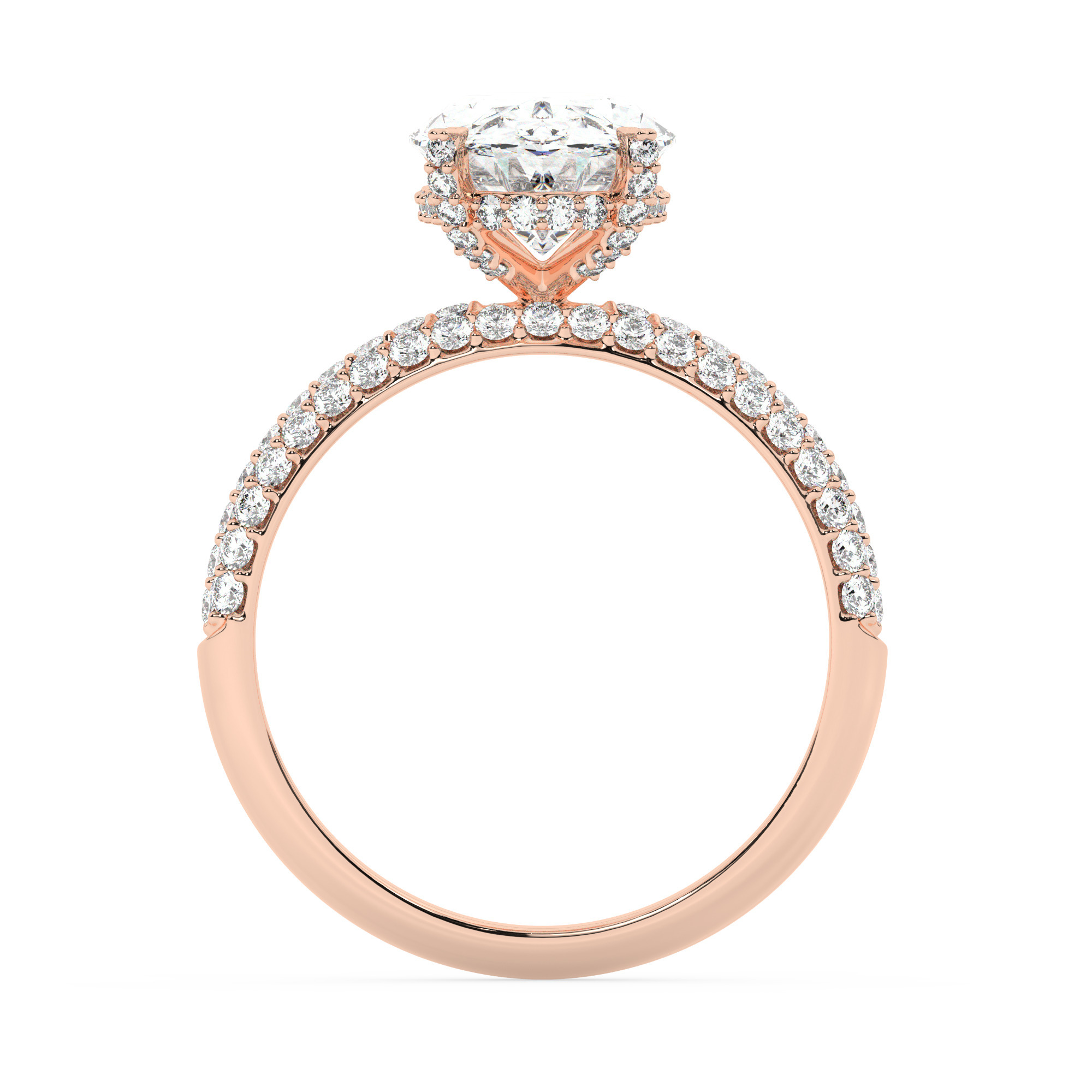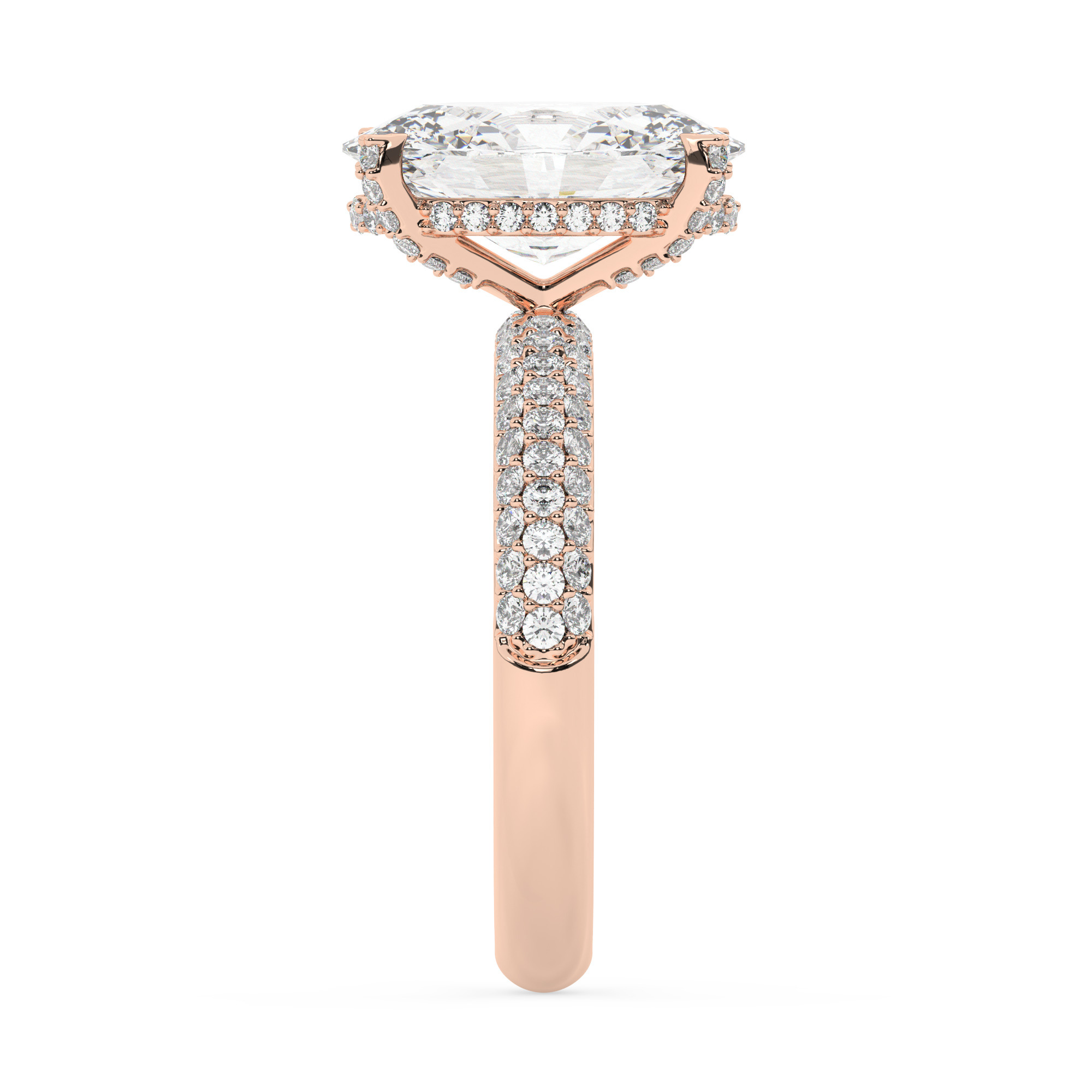 טבעת אירוסין סוליטר מרהיבה בשיבוץ זירקוניה בצבע D, עם אבן מרכזית אובלית במשקל 3 קראט ועוד 100 אבני צד, עשויה מכסף מצופה זהב רוזגולד – בחירה מושלמת לרגע שבו תגידו "כן".