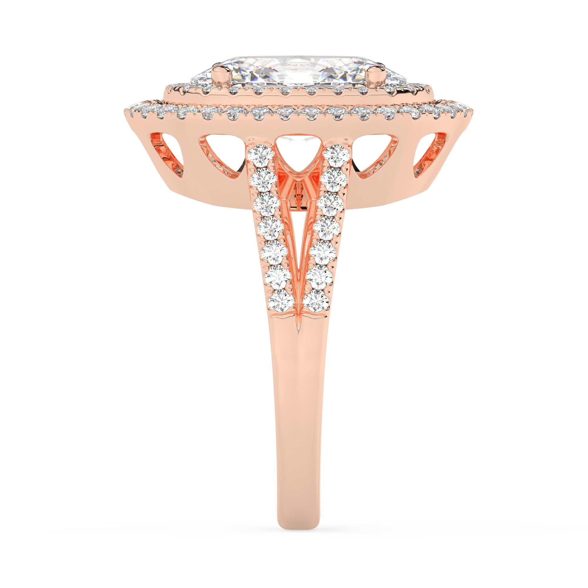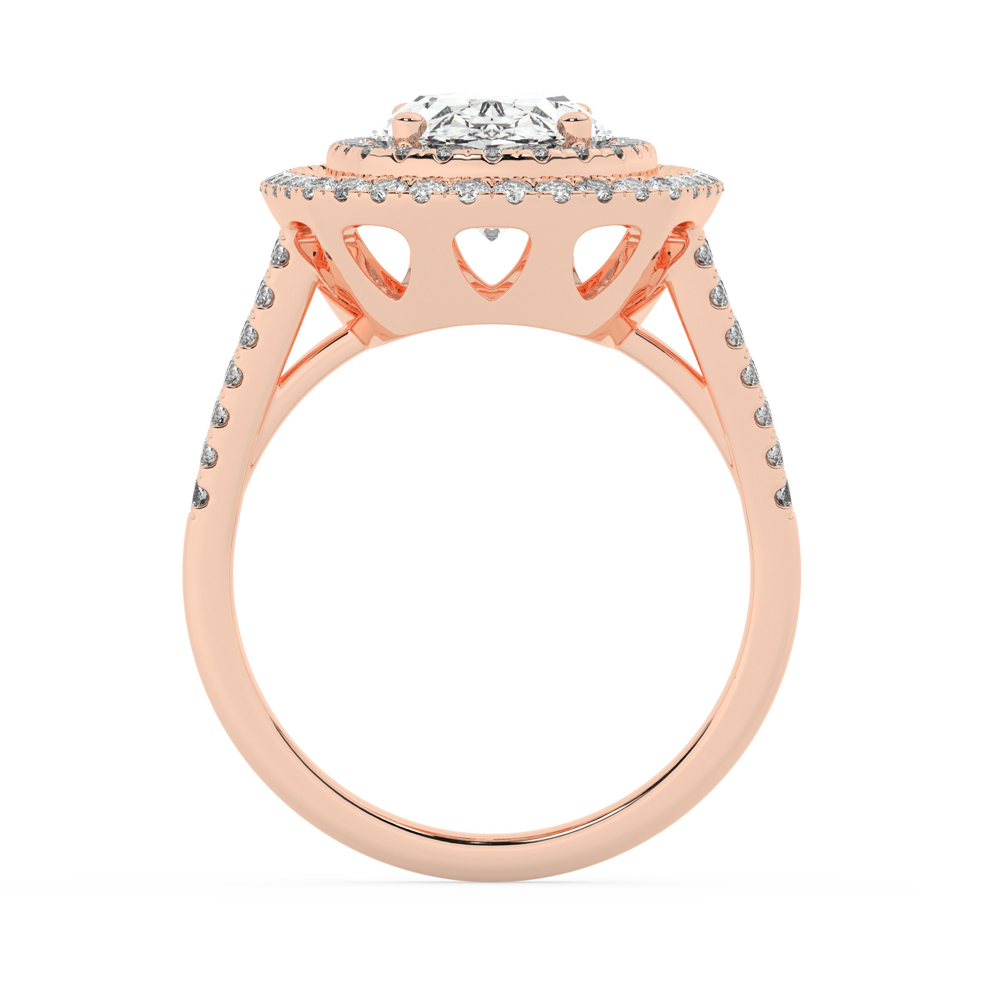 טבעת אירוסין היילו דגם 50025 כסף מצופה זהב אדום רוזגולד במרכז זירקוניה 3 קראט בחיתוך אובל מסביב ובצדדים זירקונים בחיתוך עגול