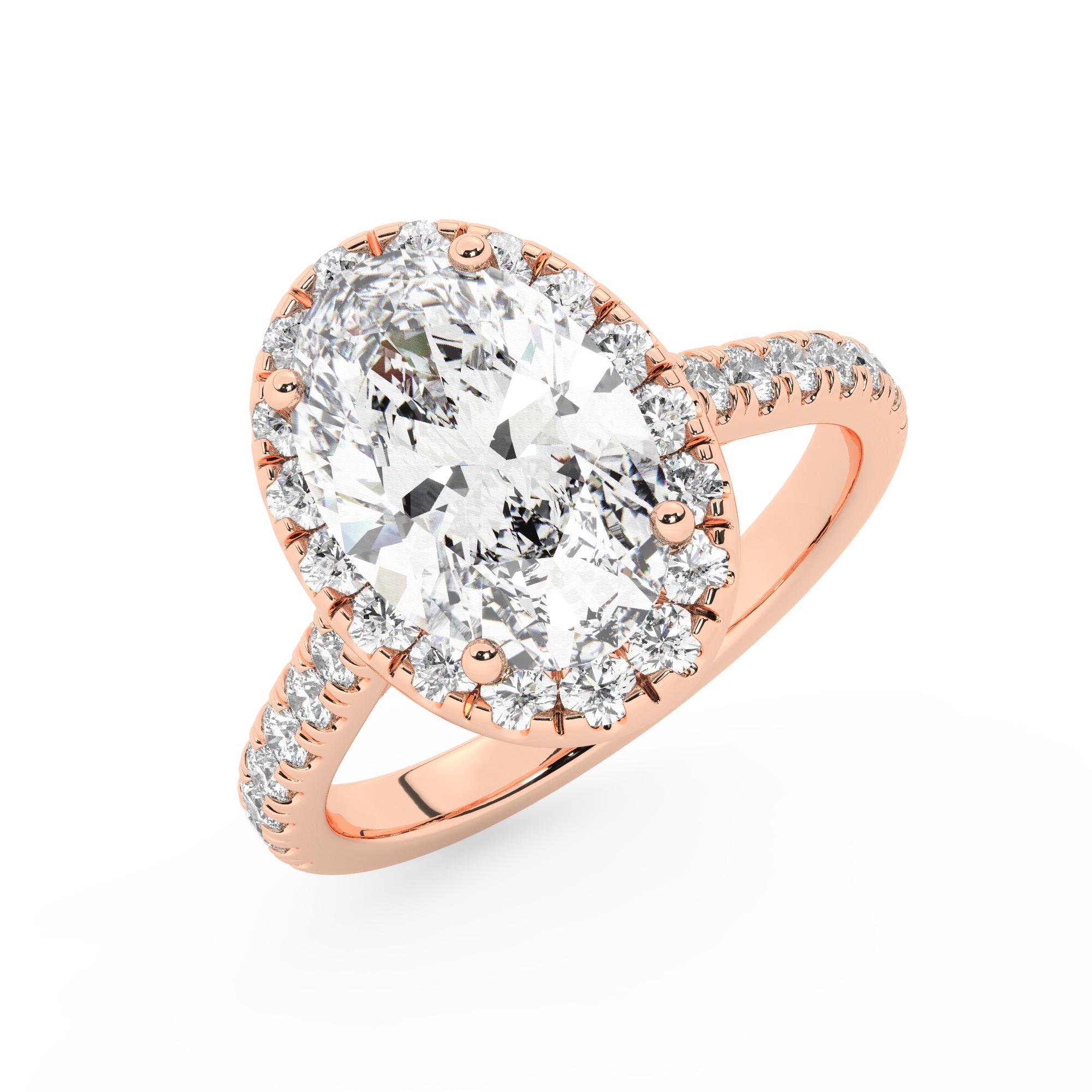 טבעת אירוסין היילו דגם 50026 כסף מצופה זהב אדום רוזגולד במרכז זירקוניה 3 קראט בחיתוך אובל מסביב ובצדדים זירקונים בחיתוך עגול
