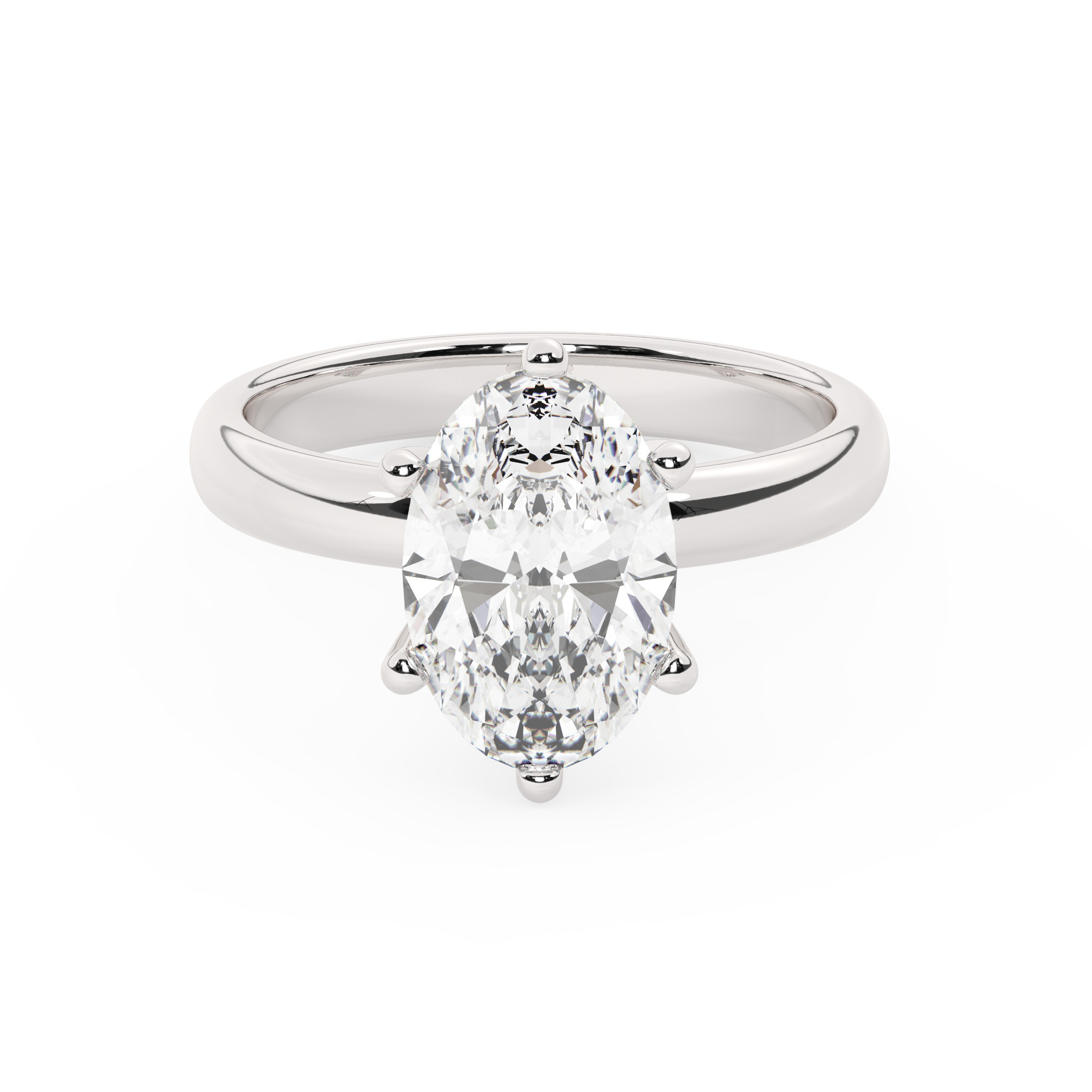 טבעת אירוסין סוליטר דגם 50047 כסף מצופה זהב לבן במרכז זירקוניה במשקל כולל של 3 קראט בחיתוך אובל עם תעודה גמולוגית