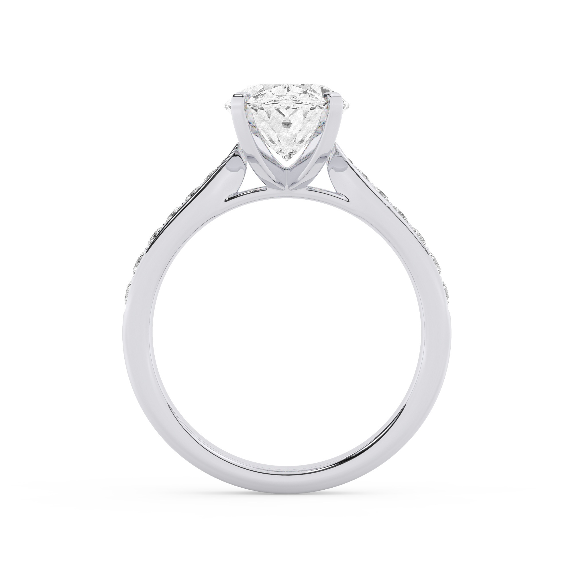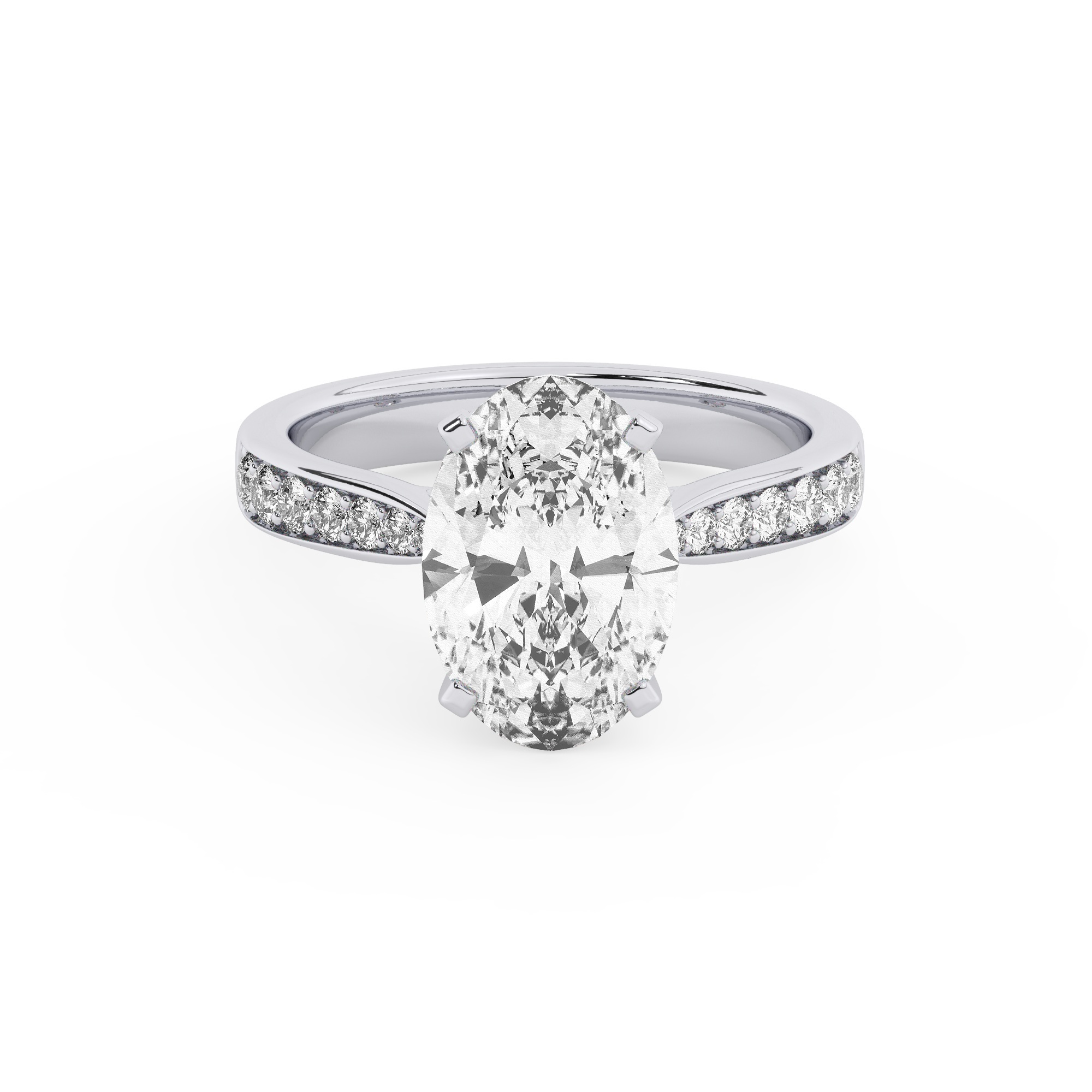 טבעת אירוסין סוליטר וזירקונים בצדדים דגם 50017 זהב לבן 14 קראט במרכז זירקוניה 4 קראט בחיתוך אובל מסביב ובצדדים זירקונים בחיתוך עגול