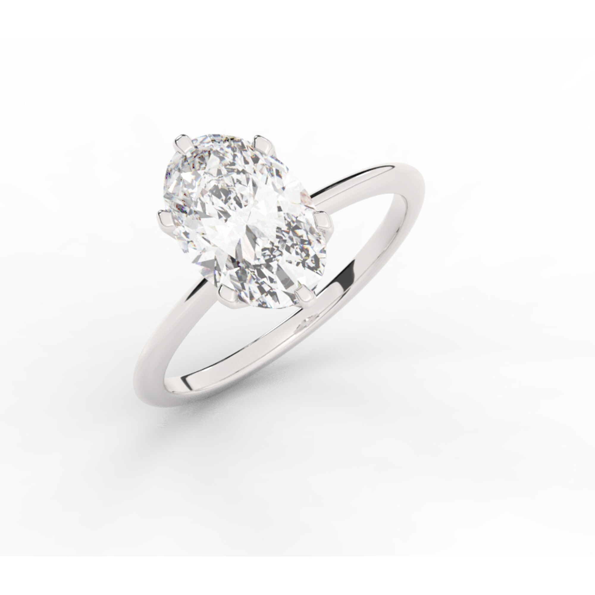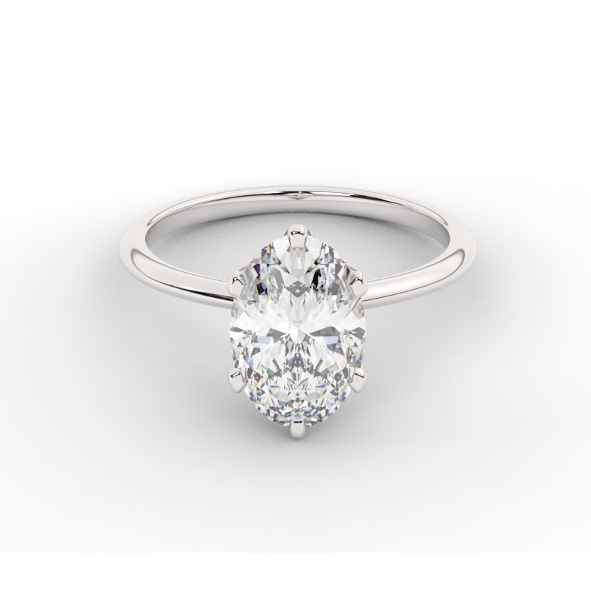 טבעת אירוסין סוליטר דגם 50023 זהב לבן 14 קראט במרכז זירקוניה במשקל כולל של 4 קראט בחיתוך אובל עם תעודה גמולוגית