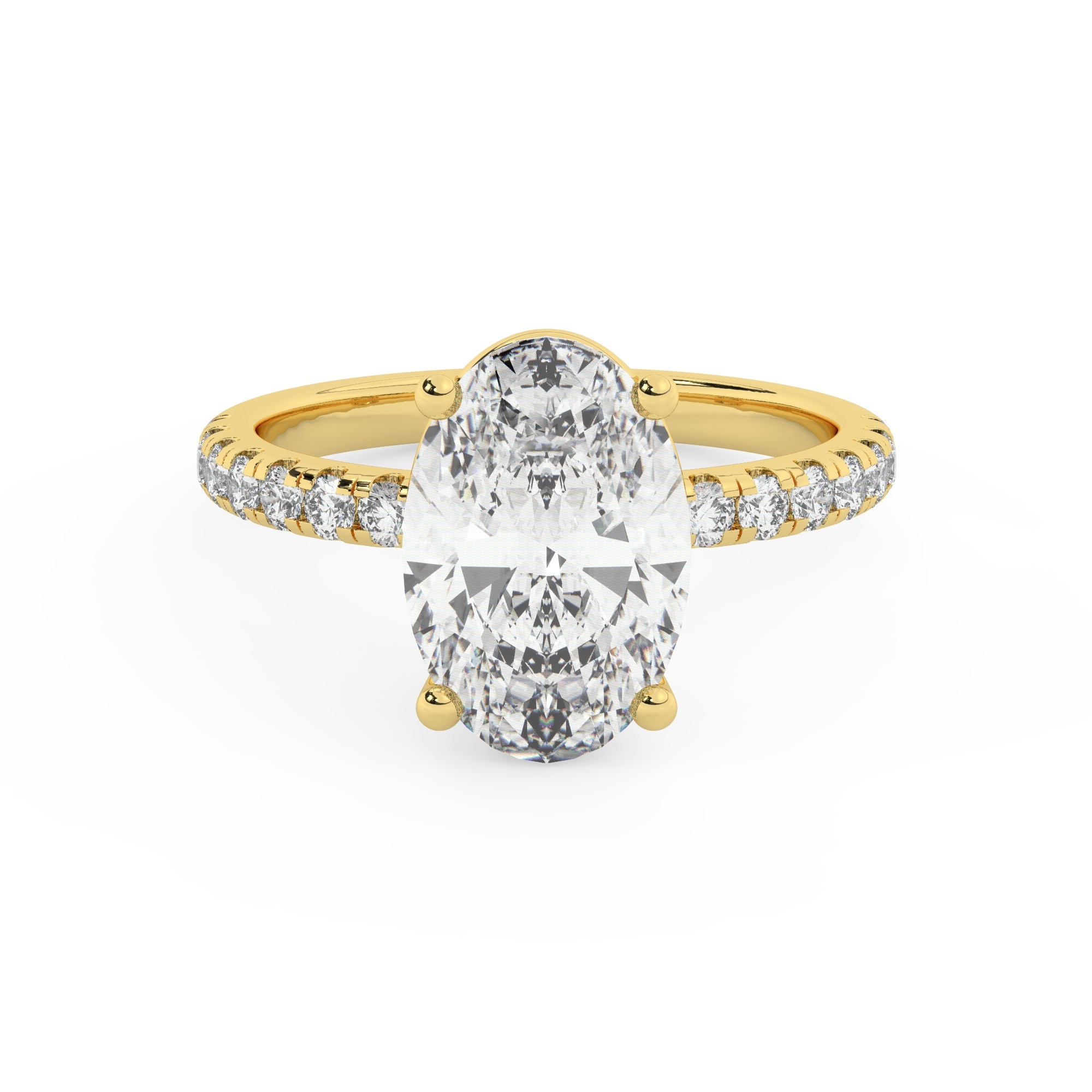 טבעת אירוסין סוליטר וזירקונים בצדדים דגם 50037 זהב צהוב 14 קראט במרכז זירקוניה 4 קראט בחיתוך אובל מסביב ובצדדים זירקונים בחיתוך עגול