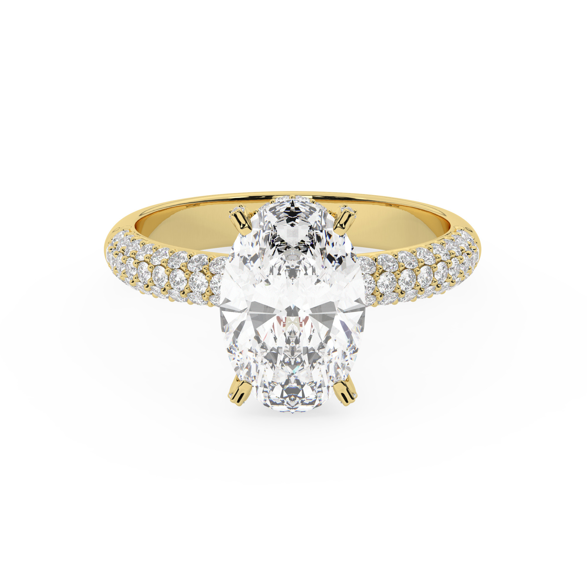 טבעת אירוסין סוליטר וזירקונים בצדדים דגם 50014 כסף מצופה זהב צהוב במרכז זירקוניה 4 קראט בחיתוך אובל מסביב ובצדדים זירקונים בחיתוך עגול