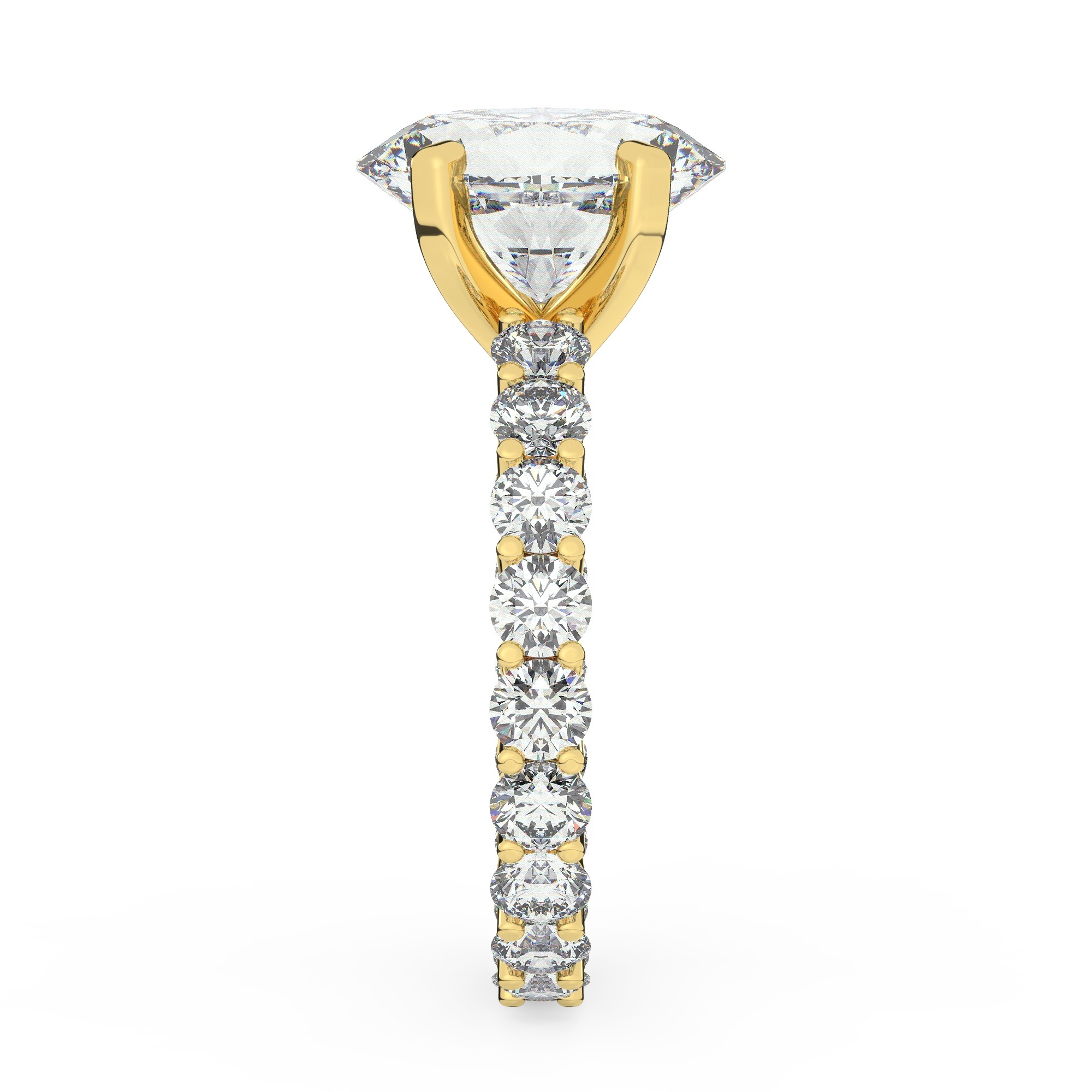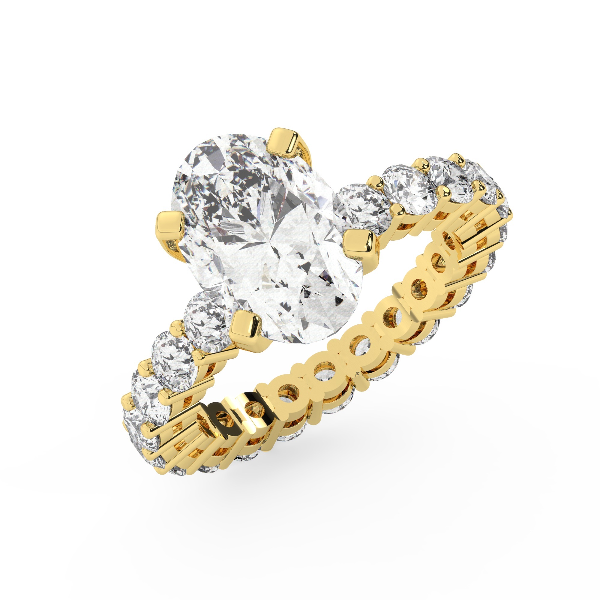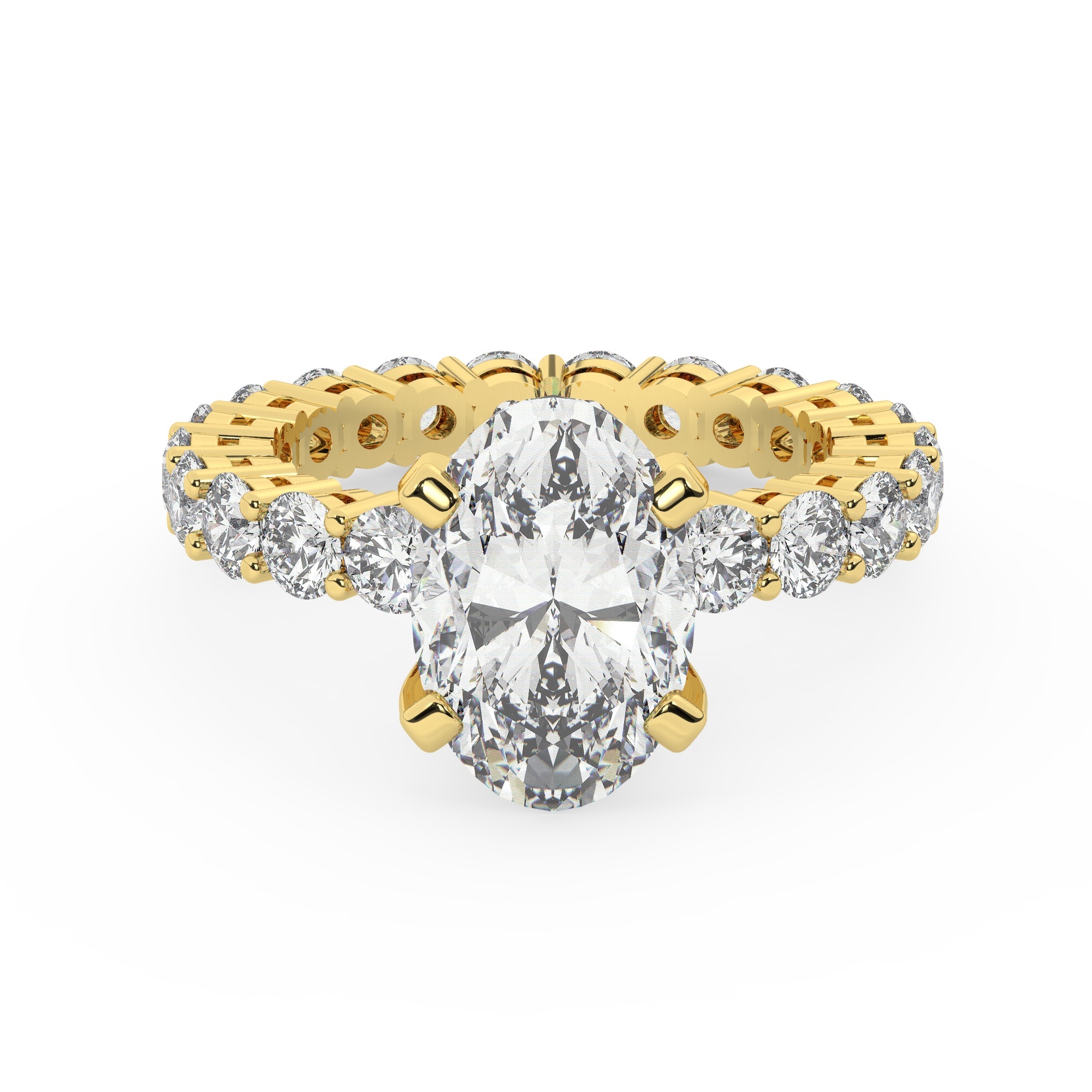 טבעת אירוסין סוליטר וזירקונים בצדדים איטרנטיני דגם 50044 כסף מצופה זהב צהוב במרכז זירקוניה 4 קראט בחיתוך אובל מסביב ובצדדים זירקונים בחיתוך עגול