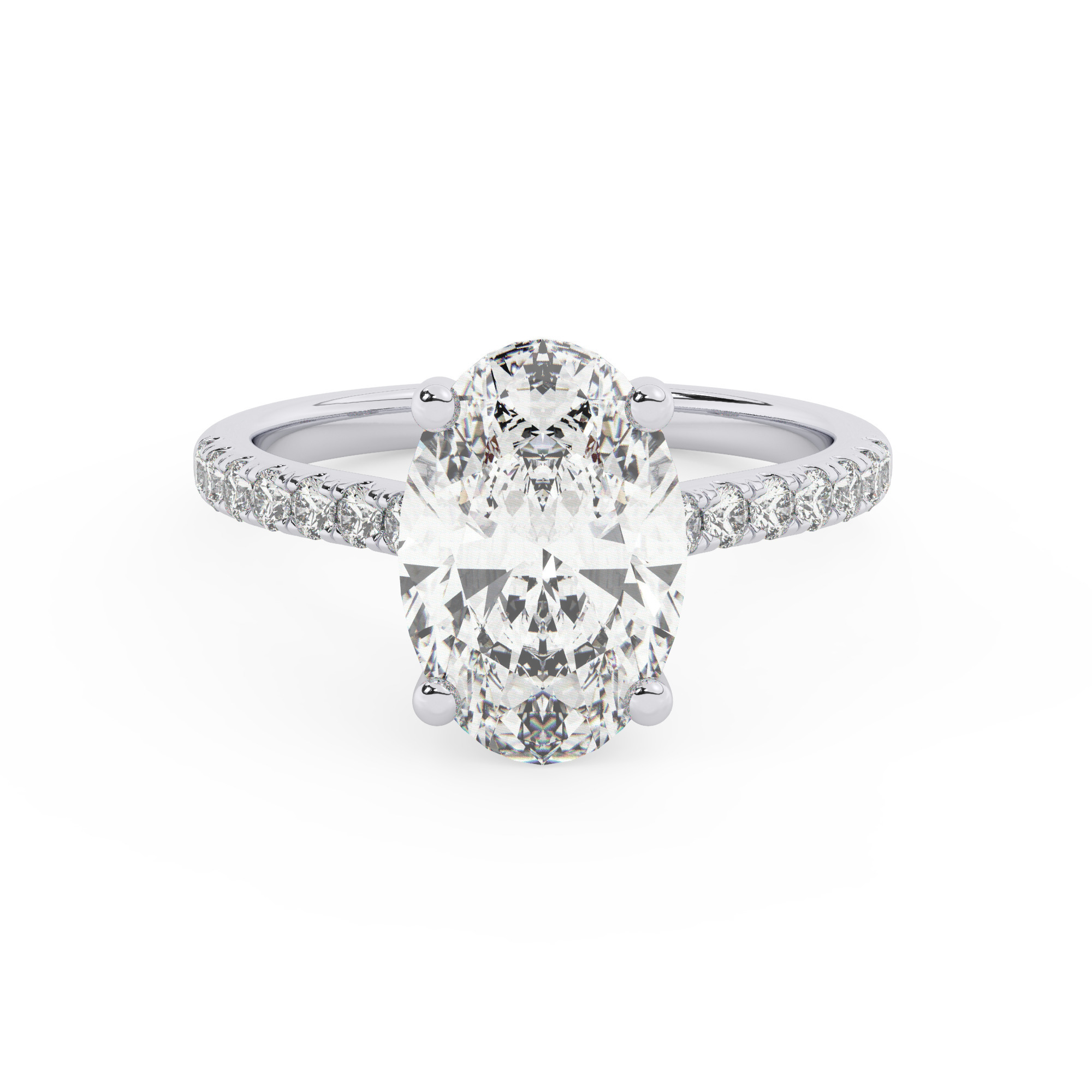 טבעת אירוסין סוליטר ויהלומים בצדדים דגם 50019 זהב לבן 14 קראט במרכז זירקוניה 5 קראט בחיתוך אובל מסביב ובצדדים זירקונים בחיתוך עגול