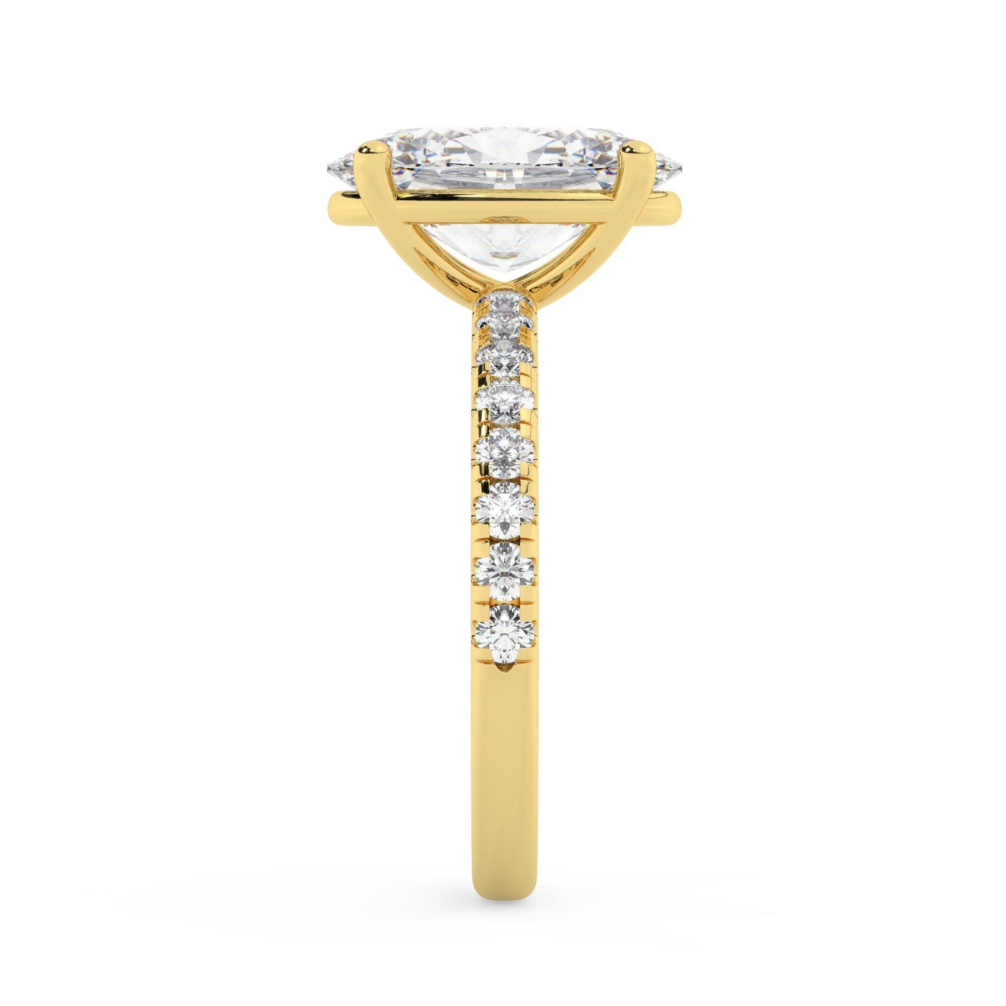 טבעת אירוסין סוליטר וזירקונים בצדדים דגם 50037 זהב צהוב 14 קראט במרכז זירקוניה 5 קראט בחיתוך אובל מסביב ובצדדים זירקונים בחיתוך עגול