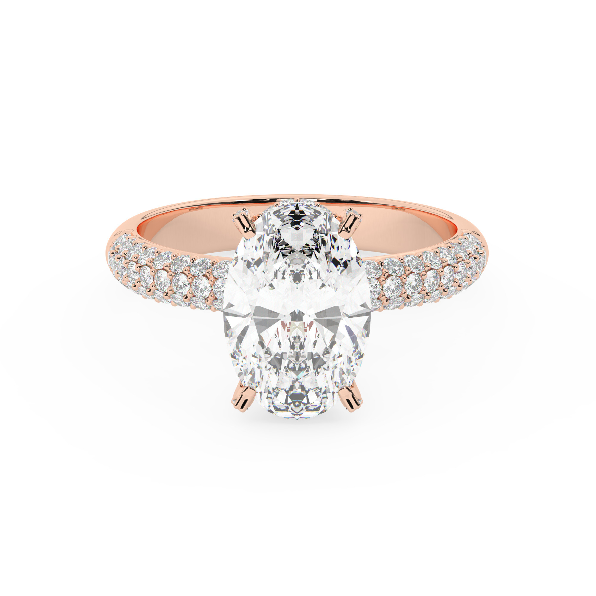 50% הנחהטבעת אירוסין סוליטר ויהלומים בצדדים דגם 50068 כסף מצופה זהב אדום רוזגולד במרכז זירקוניה 3 קראט בחיתוך אובל מסביב ובצדדים זירקונים