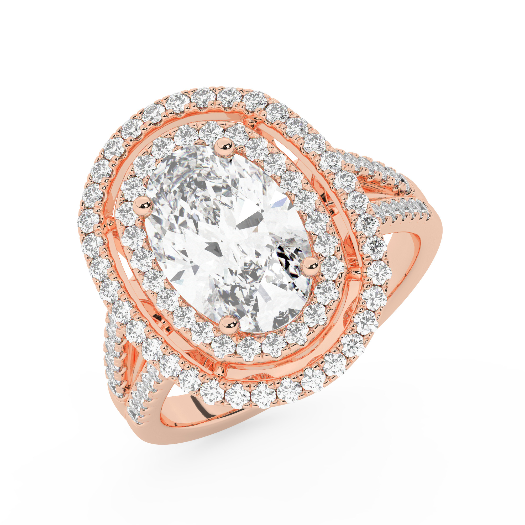 טבעת אירוסין היילו דגם 50025 כסף מצופה זהב אדום רוזגולד במרכז זירקוניה 5 קראט בחיתוך אובל מסביב ובצדדים זירקונים בחיתוך עגול