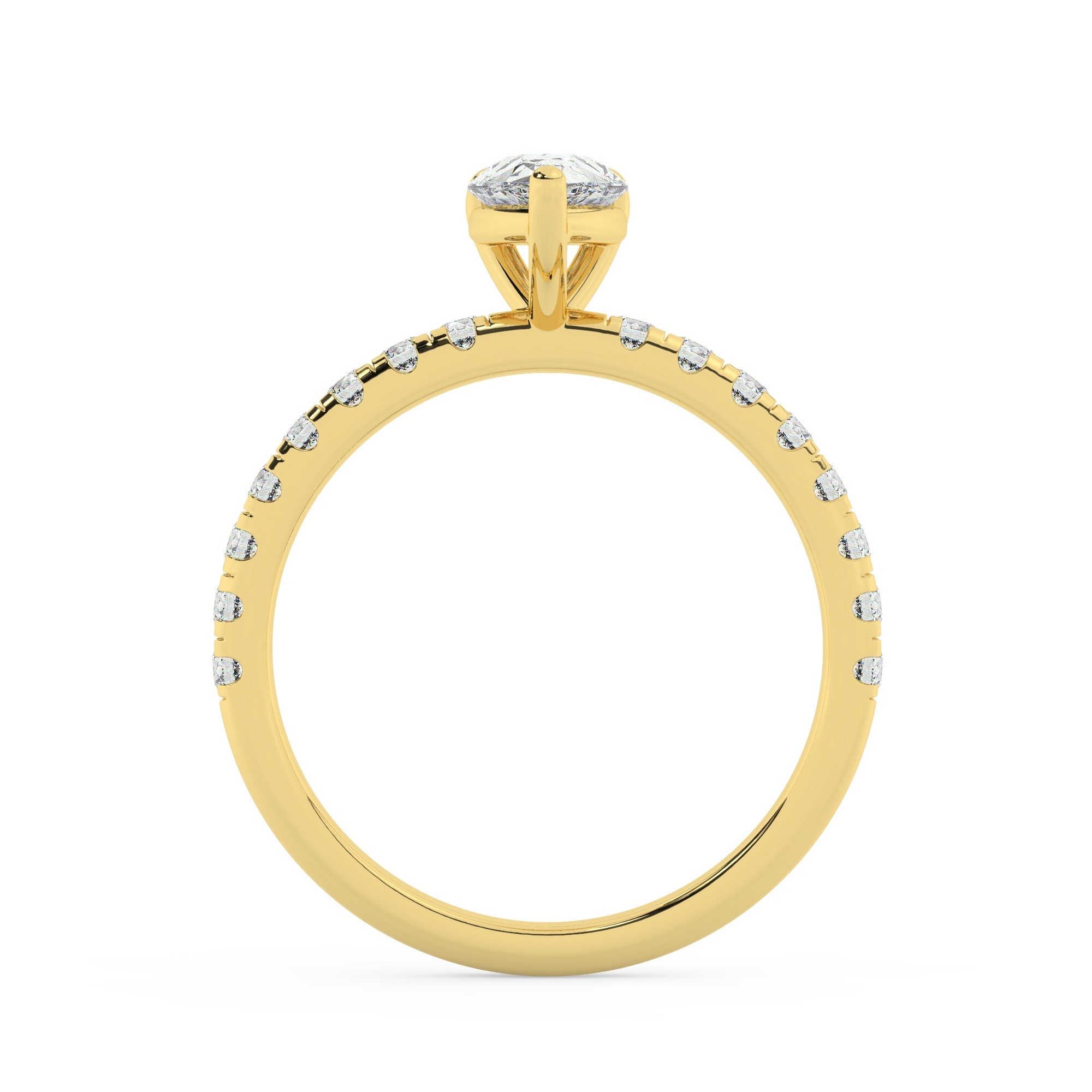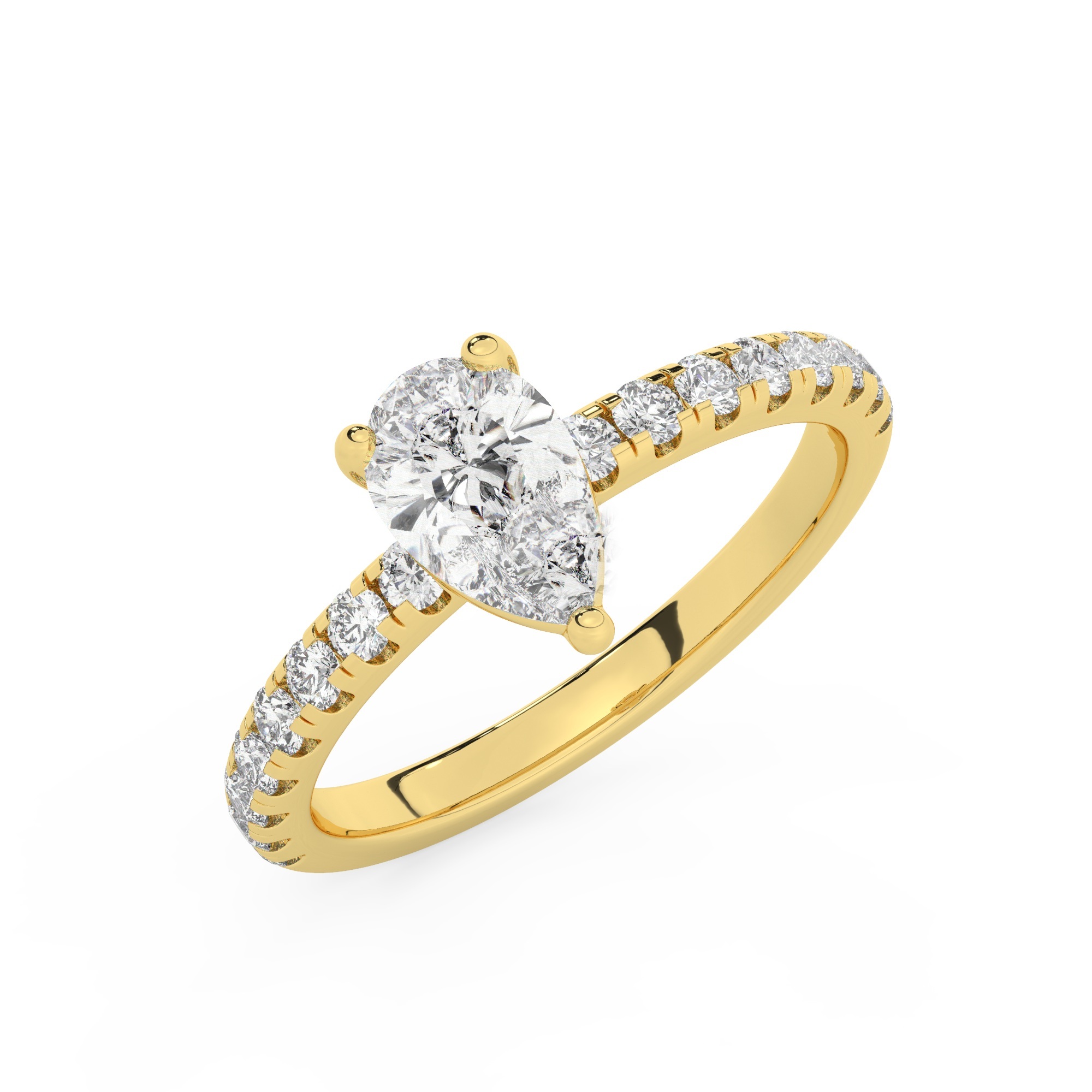טבעת אירוסין סוליטר וזירקונים בצדדים דגם 50037 זהב צהוב 14 קראט במרכז זירקוניה 0.75 קראט בחיתוך טיפה מסביב ובצדדים זירקונים בחיתוך עגול
