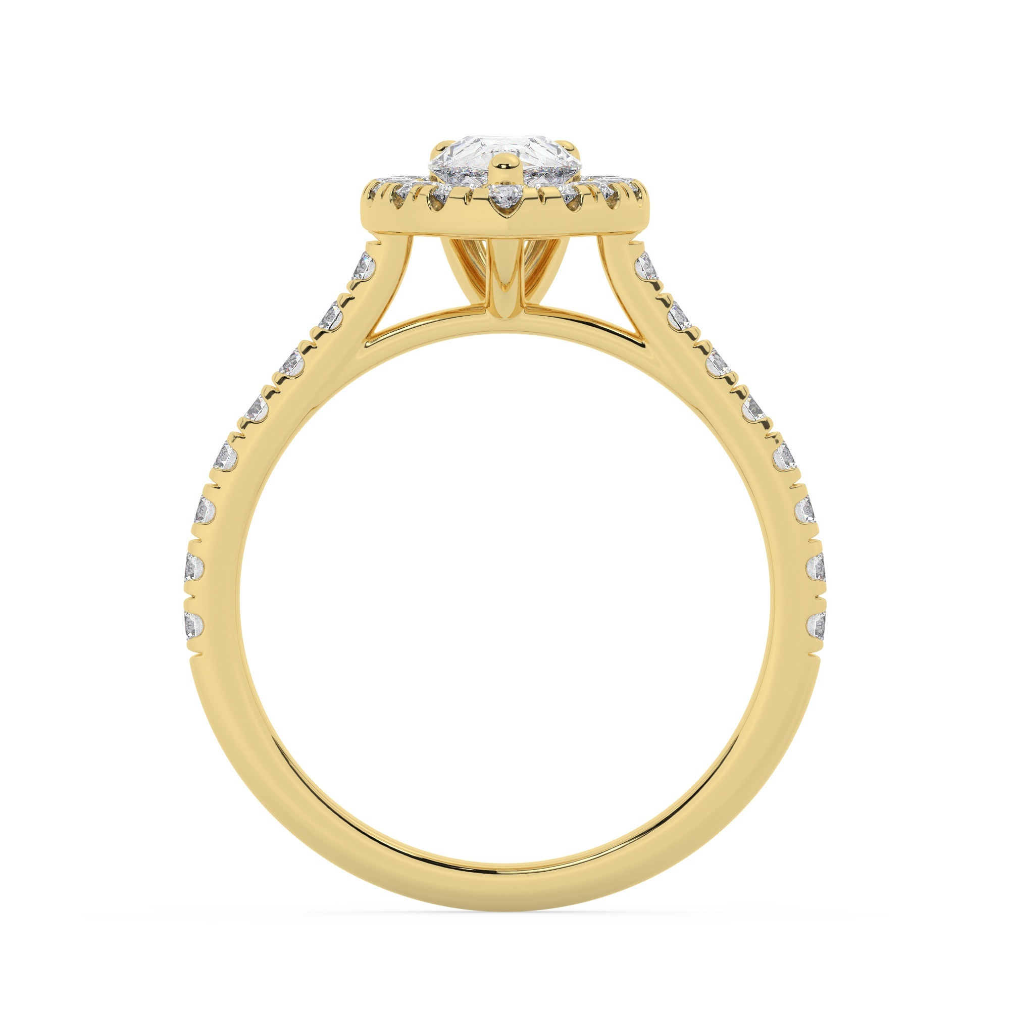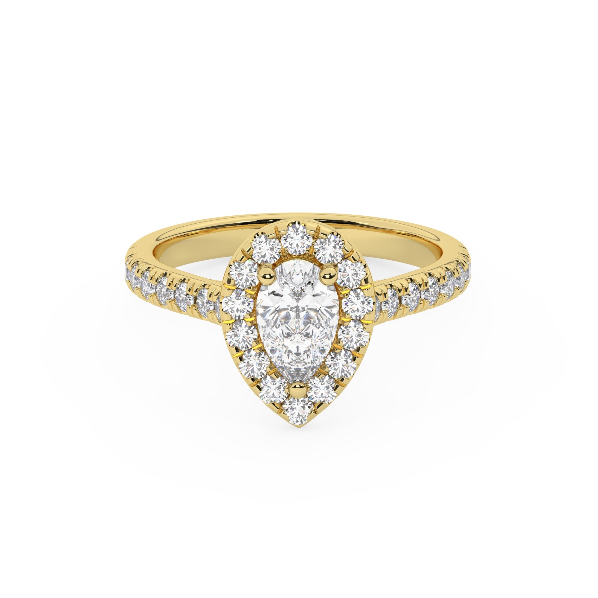טבעת אירוסין היילו דגם 50026 זהב צהוב 14 קראט במרכז זירקוניה 1 קראט בחיתוך טיפה מסביב ובצדדים זירקונים בחיתוך עגול