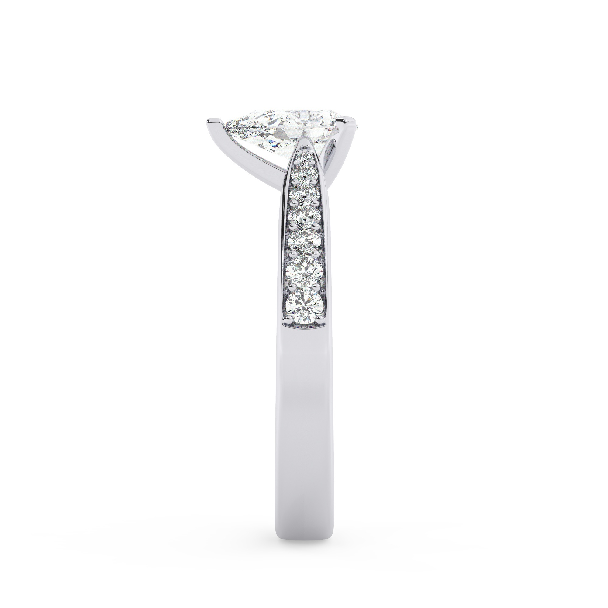 טבעת אירוסין סוליטר וזירקונים בצדדים דגם 50017 זהב לבן 14 קראט במרכז זירקוניה 1.50 קראט בחיתוך טיפה מסביב ובצדדים זירקונים בחיתוך עגול