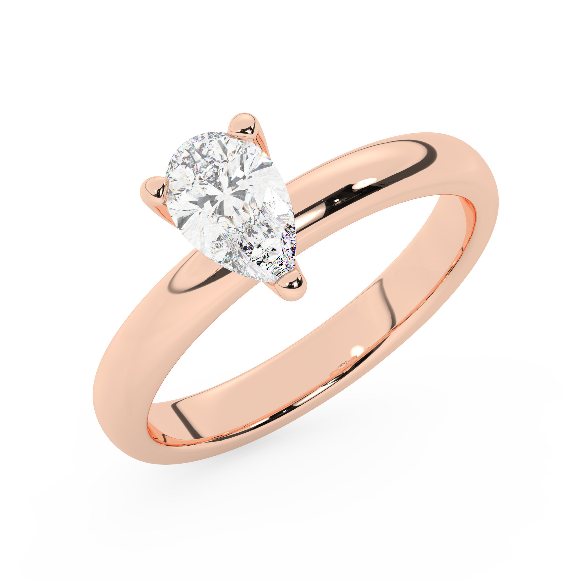 טבעת אירוסין סוליטר דגם 50047 זהב אדום רוזגולד 14 קראט במרכז זירקוניה במשקל כולל של 2 קראט בחיתוך טיפה עם תעודה גמולוגית