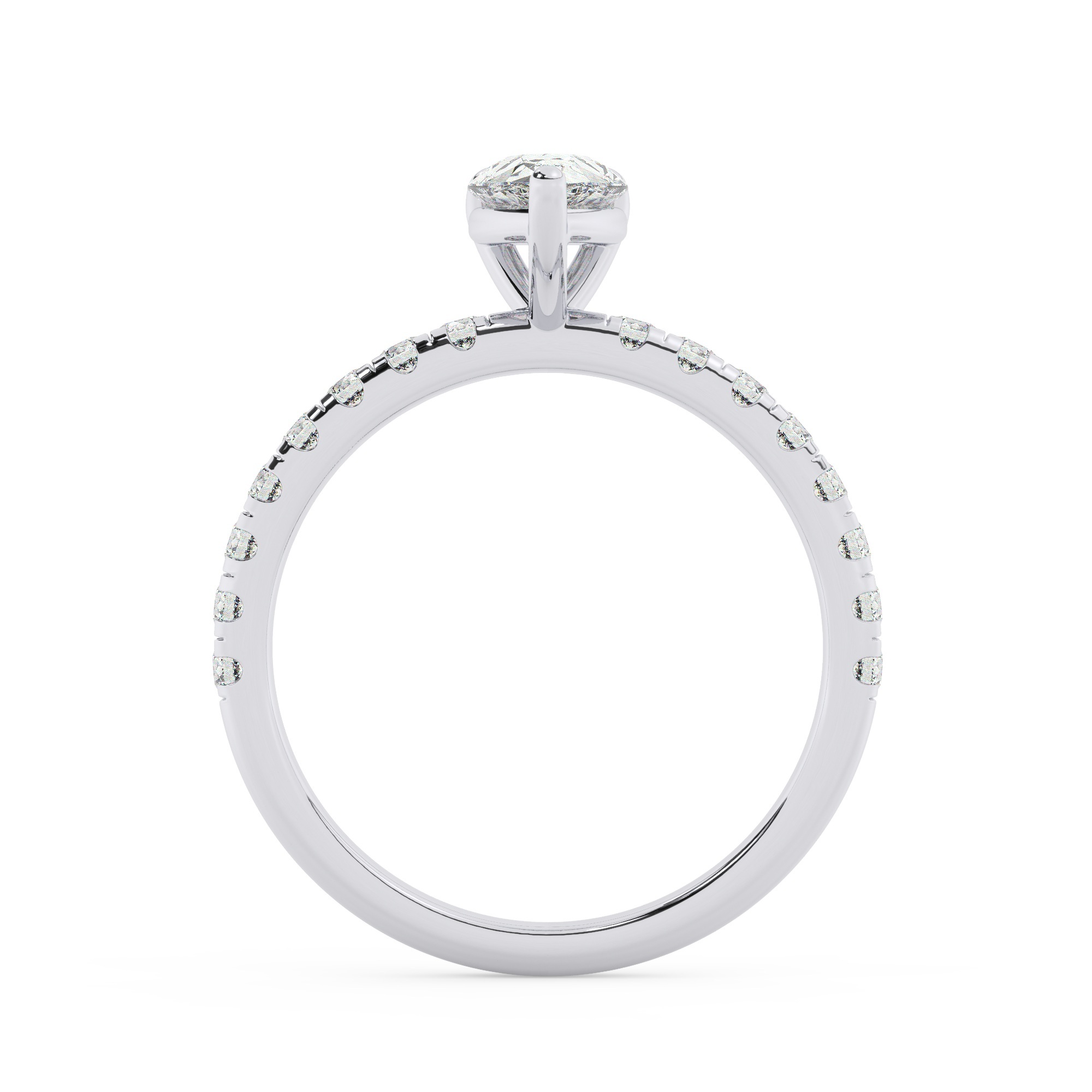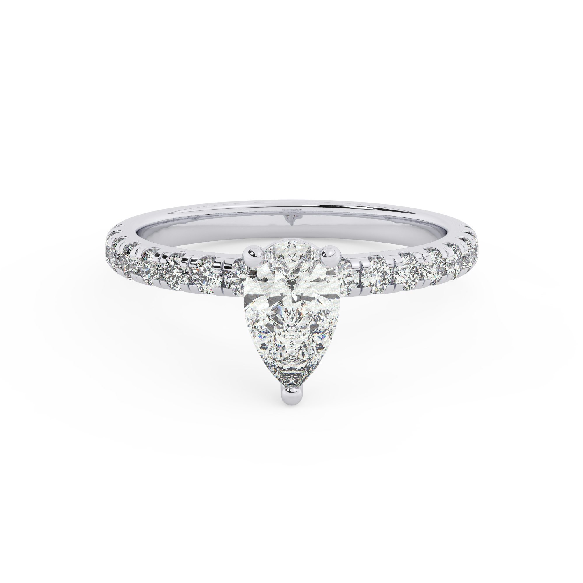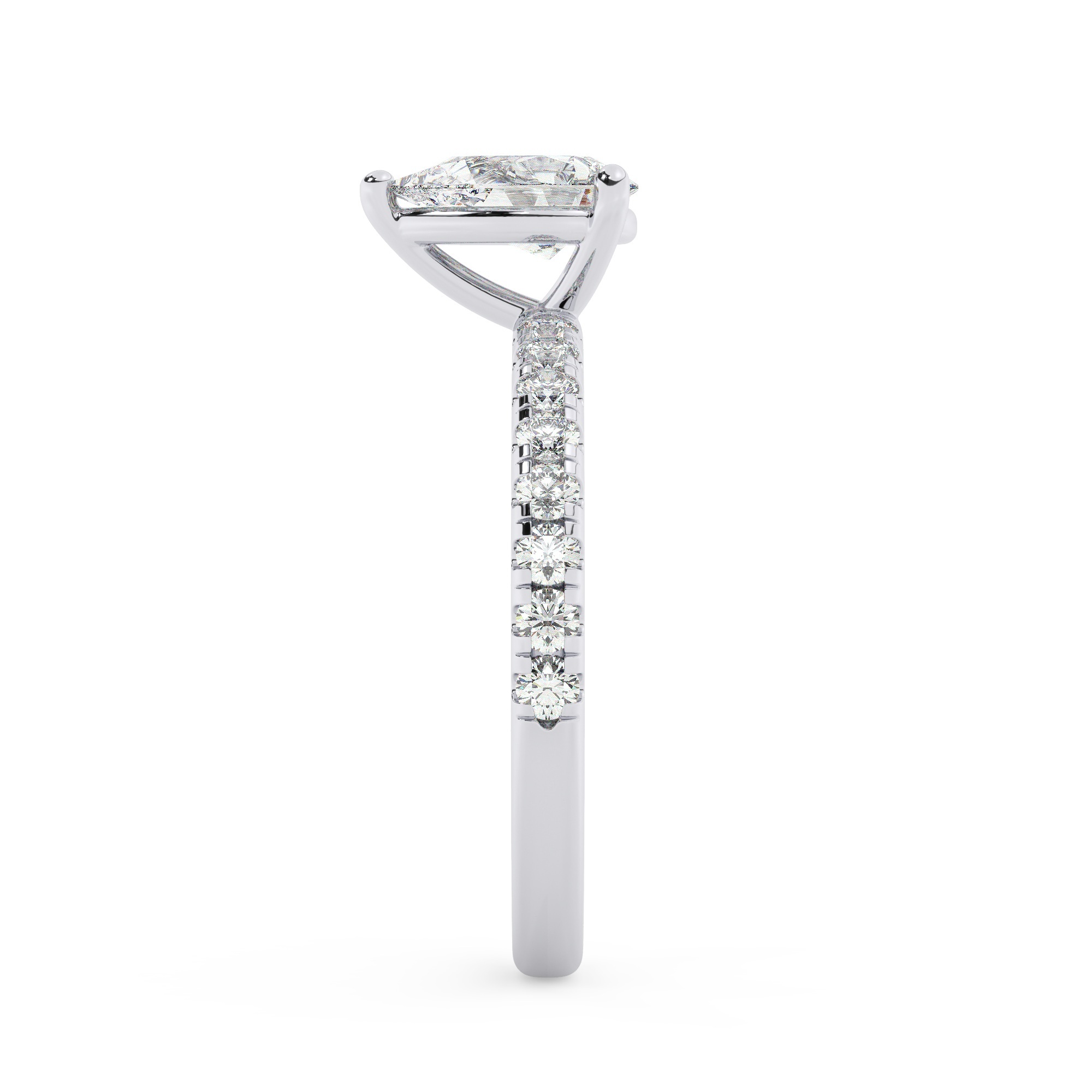 טבעת אירוסין סוליטר וזירקונים בצדדים דגם 50037 זהב לבן 14 קראט במרכז זירקוניה 2 קראט בחיתוך טיפה מסביב ובצדדים זירקונים בחיתוך עגול