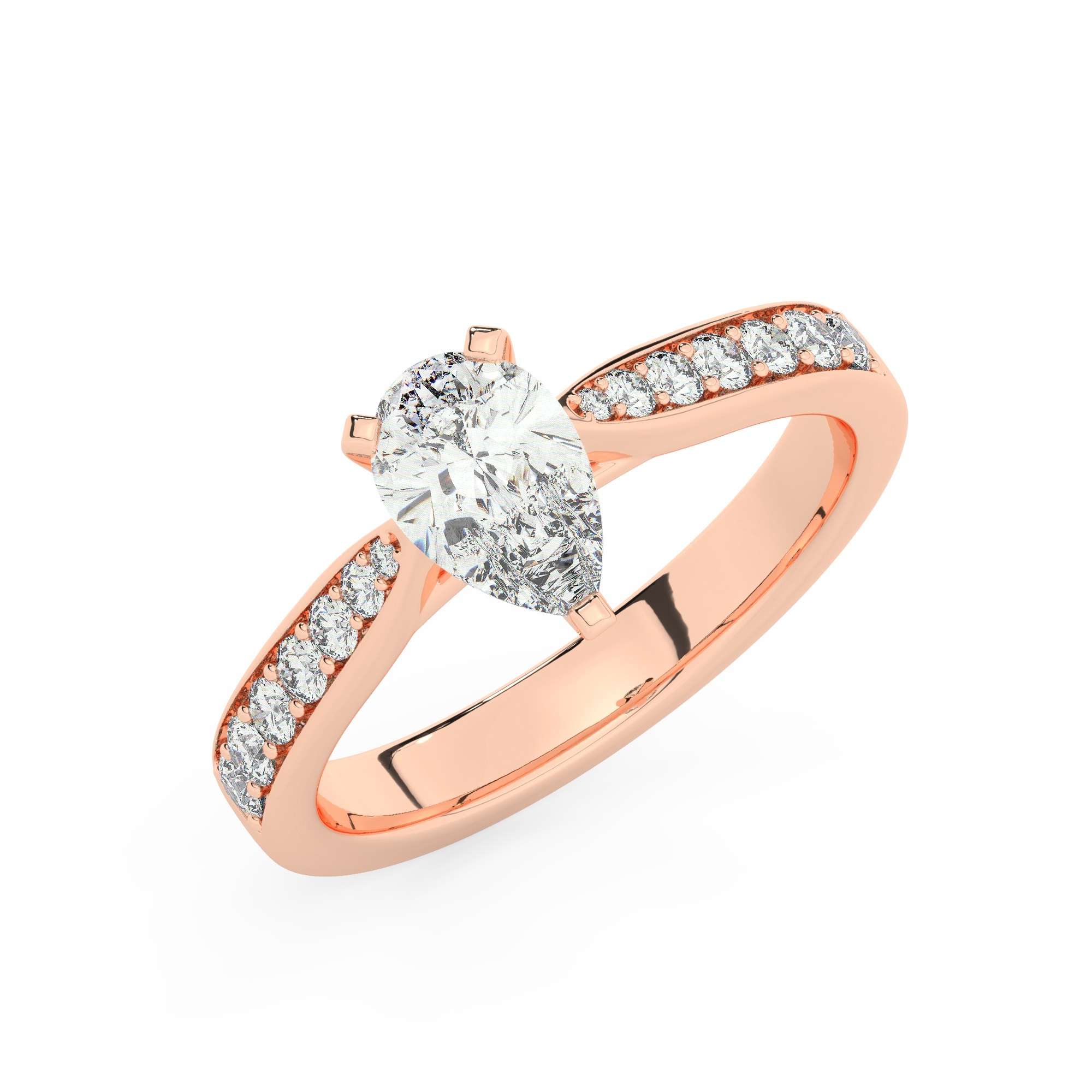 טבעת אירוסין סוליטר וזירקונים בצדדים דגם 50017 כסף מצופה זהב אדום רוזגולד במרכז זירקוניה 2 קראט בחיתוך טיפה מסביב ובצדדים זירקונים בחיתוך עגול