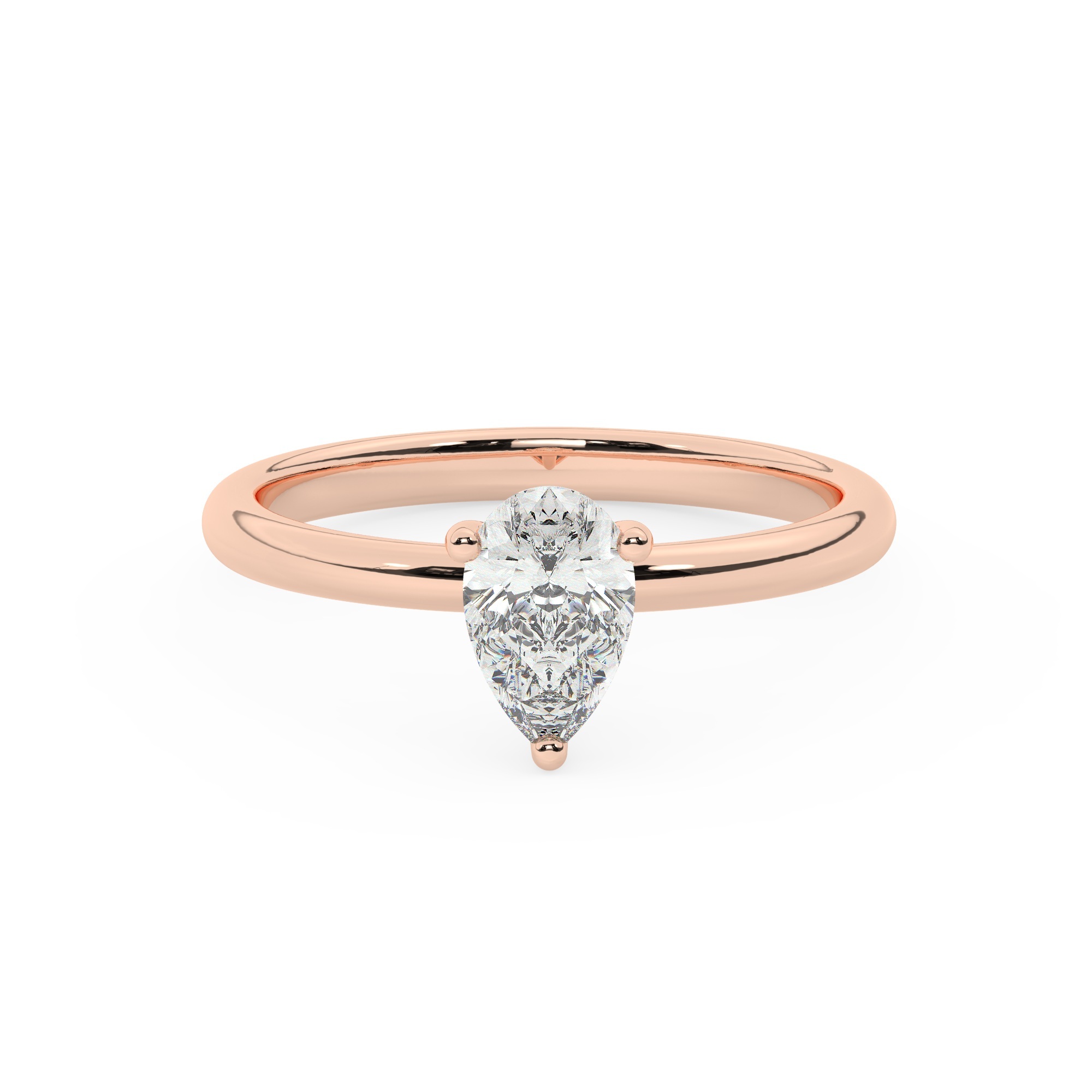 טבעת אירוסין סוליטר דגם 50016 זהב אדום רוזגולד 14 קראט במרכז זירקוניה במשקל כולל של 2.50 קראט בחיתוך טיפה עם תעודה גמולוגית