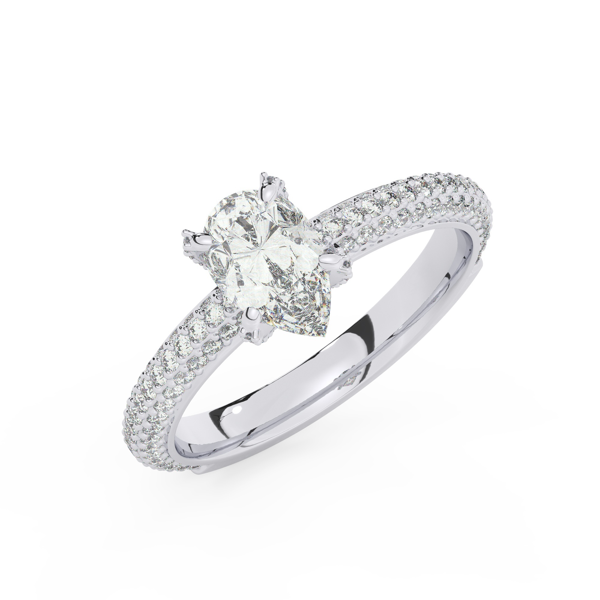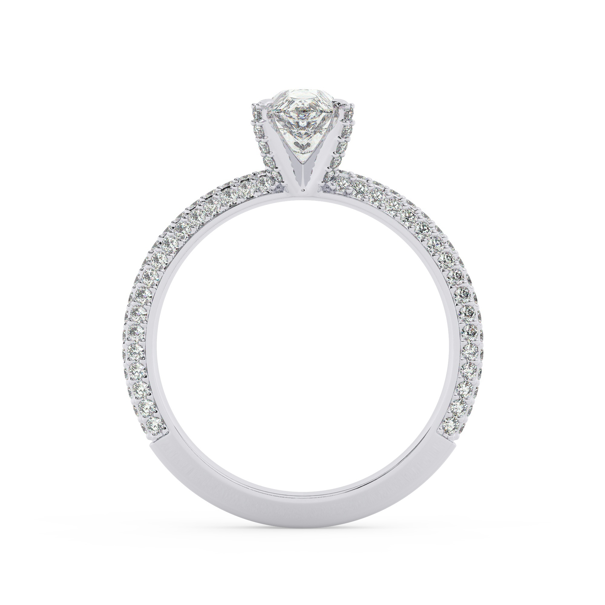 טבעת אירוסין סוליטר ויהלומים בצדדים דגם 50012 זהב לבן 14 קראט במרכז זירקוניה 2.50 קראט בחיתוך טיפה מסביב ובצדדים זירקונים בחיתוך עגול
