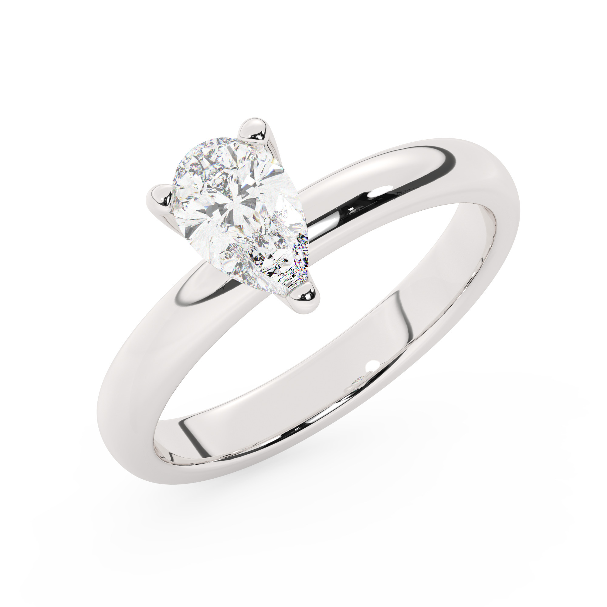 טבעת אירוסין סוליטר דגם 50047 זהב לבן 14 קראט במרכז זירקוניה במשקל כולל של 2.50 קראט בחיתוך טיפה עם תעודה גמולוגית