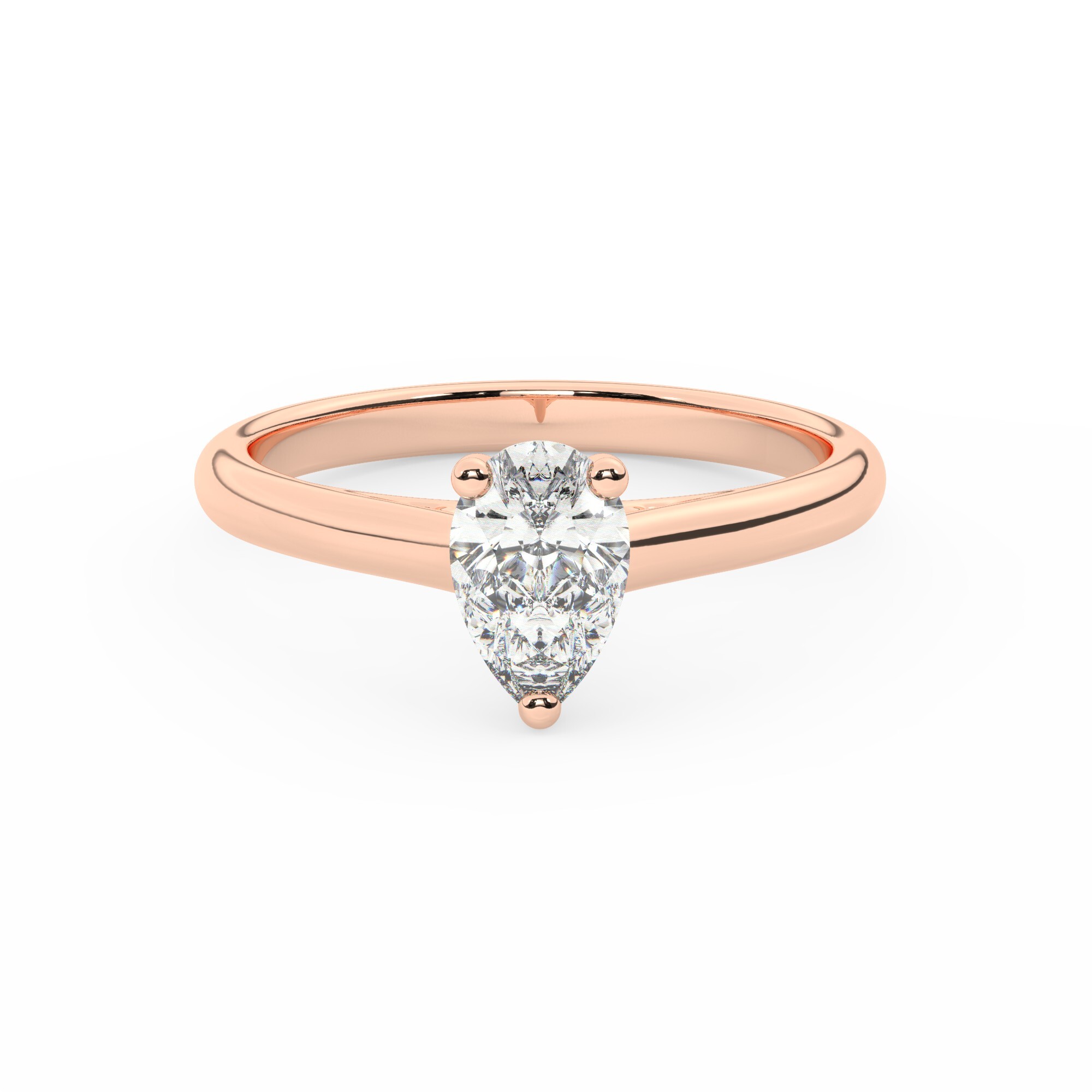 טבעת אירוסין סוליטר דגם 50029 זהב אדום רוזגולד 14 קראט במרכז זירקוניה במשקל כולל של 3 קראט בחיתוך טיפה עם תעודה גמולוגית