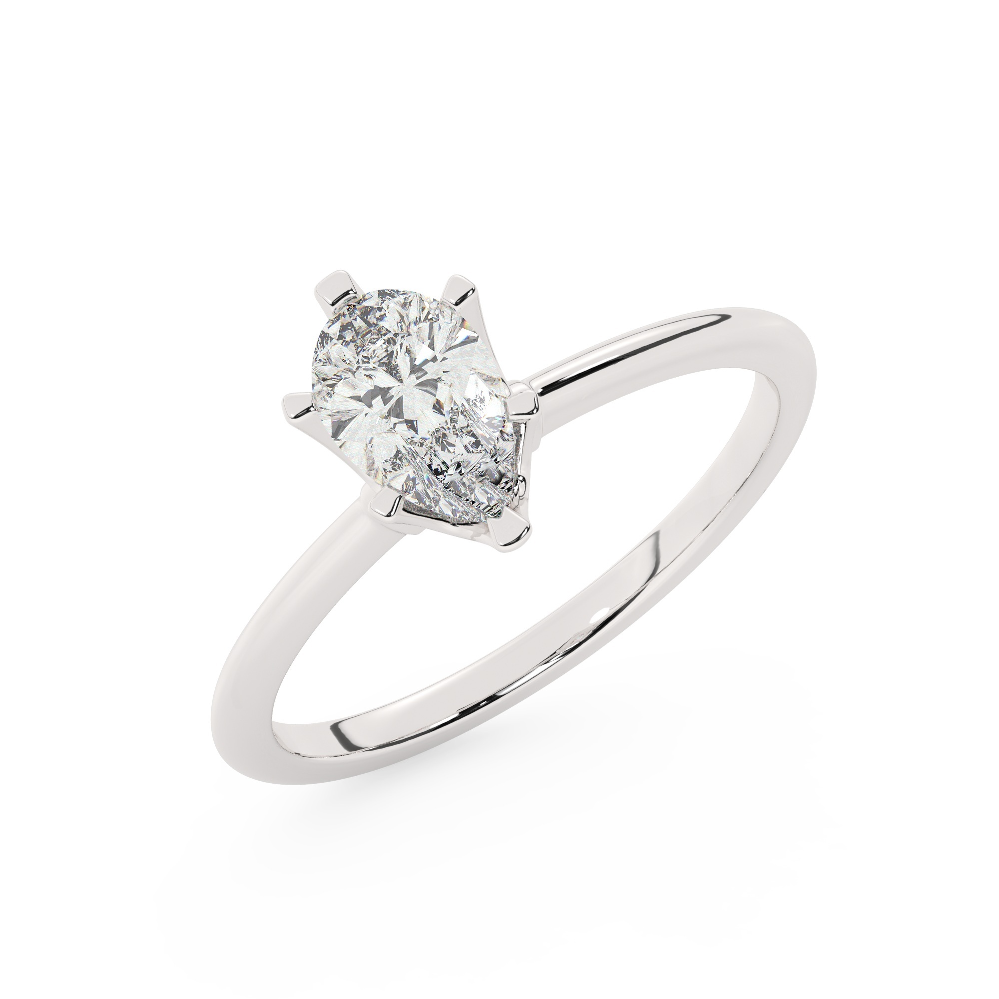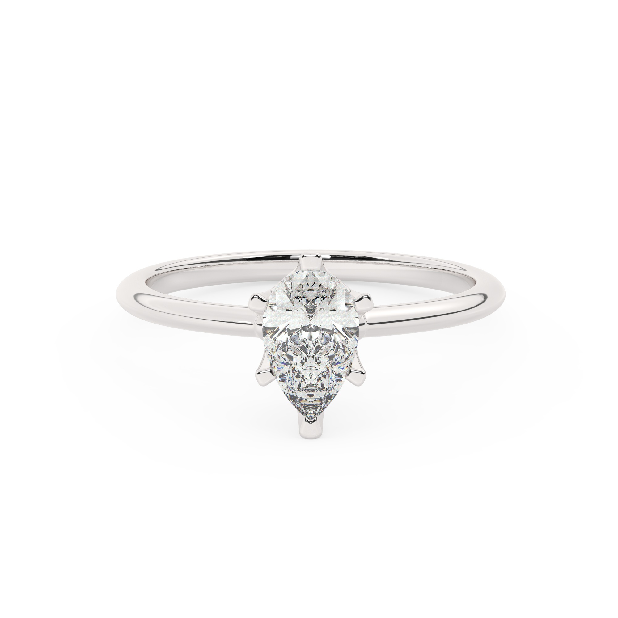 טבעת אירוסין סוליטר דגם 50023 זהב לבן 14 קראט במרכז זירקוניה במשקל כולל של 5 קראט בחיתוך טיפה עם תעודה גמולוגית