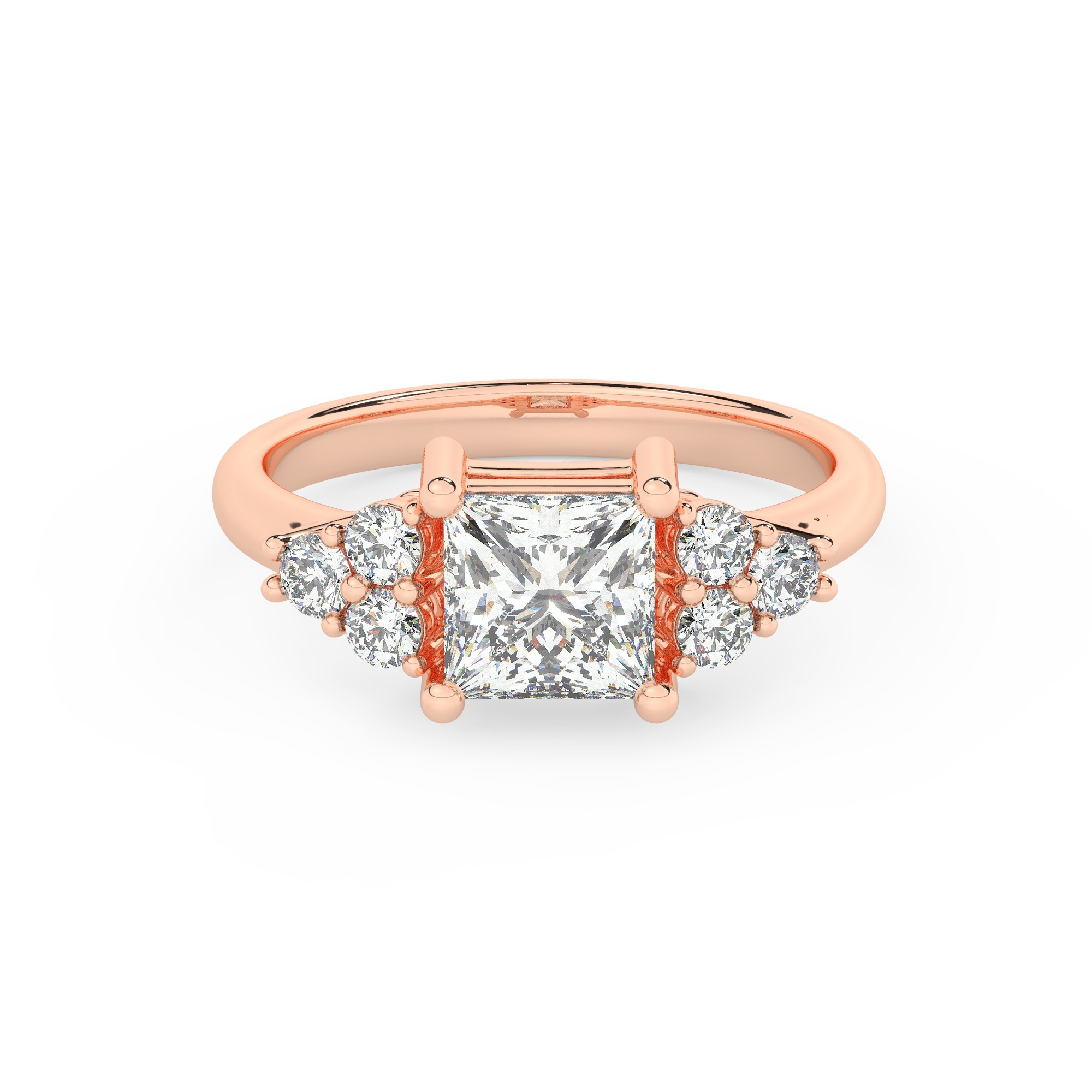 טבעת אירוסין סוליטר וזירקונים בצדדים דגם 50041 זהב אדום רוזגולד 14 קראט במרכז זירקוניה 0.75 קראט בחיתוך פרינסס מסביב ובצדדים זירקונים בחיתוך עגול