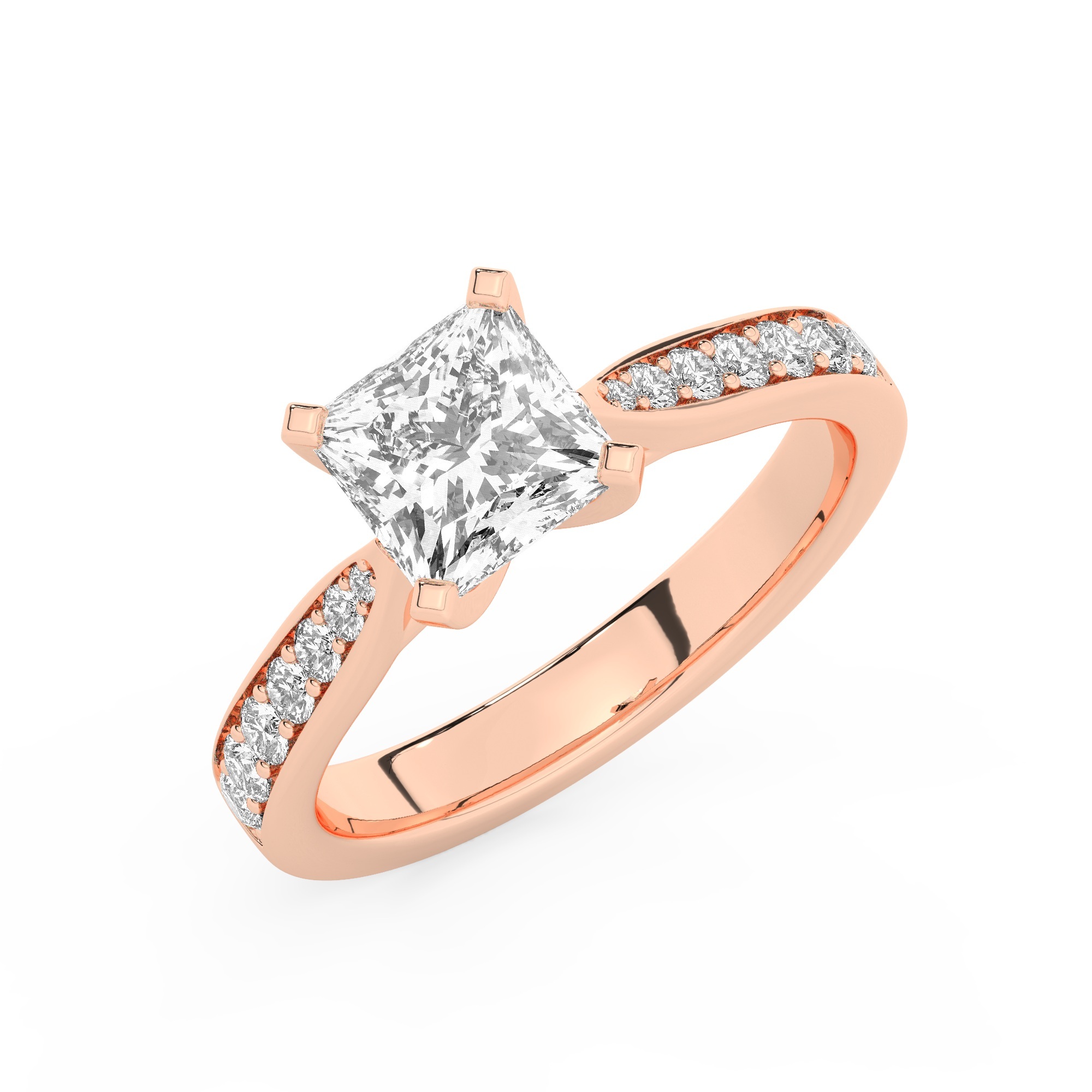 טבעת אירוסין סוליטר וזירקונים בצדדים דגם 50017 כסף מצופה זהב אדום רוזגולד במרכז זירקוניה 0.75 קראט בחיתוך פרינסס מסביב ובצדדים זירקונים בחיתוך עגול
