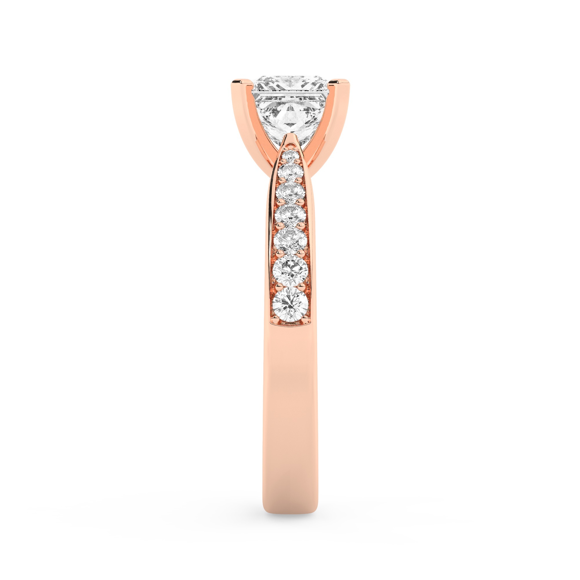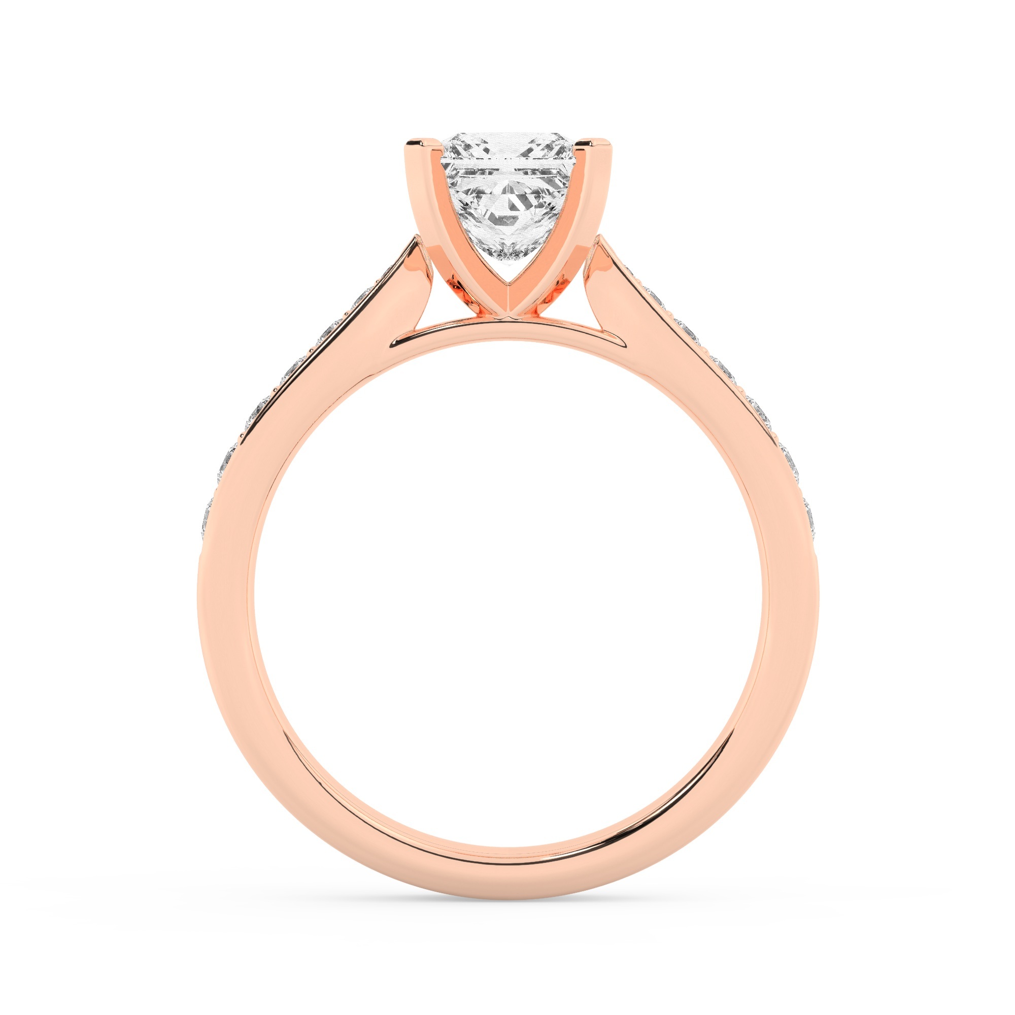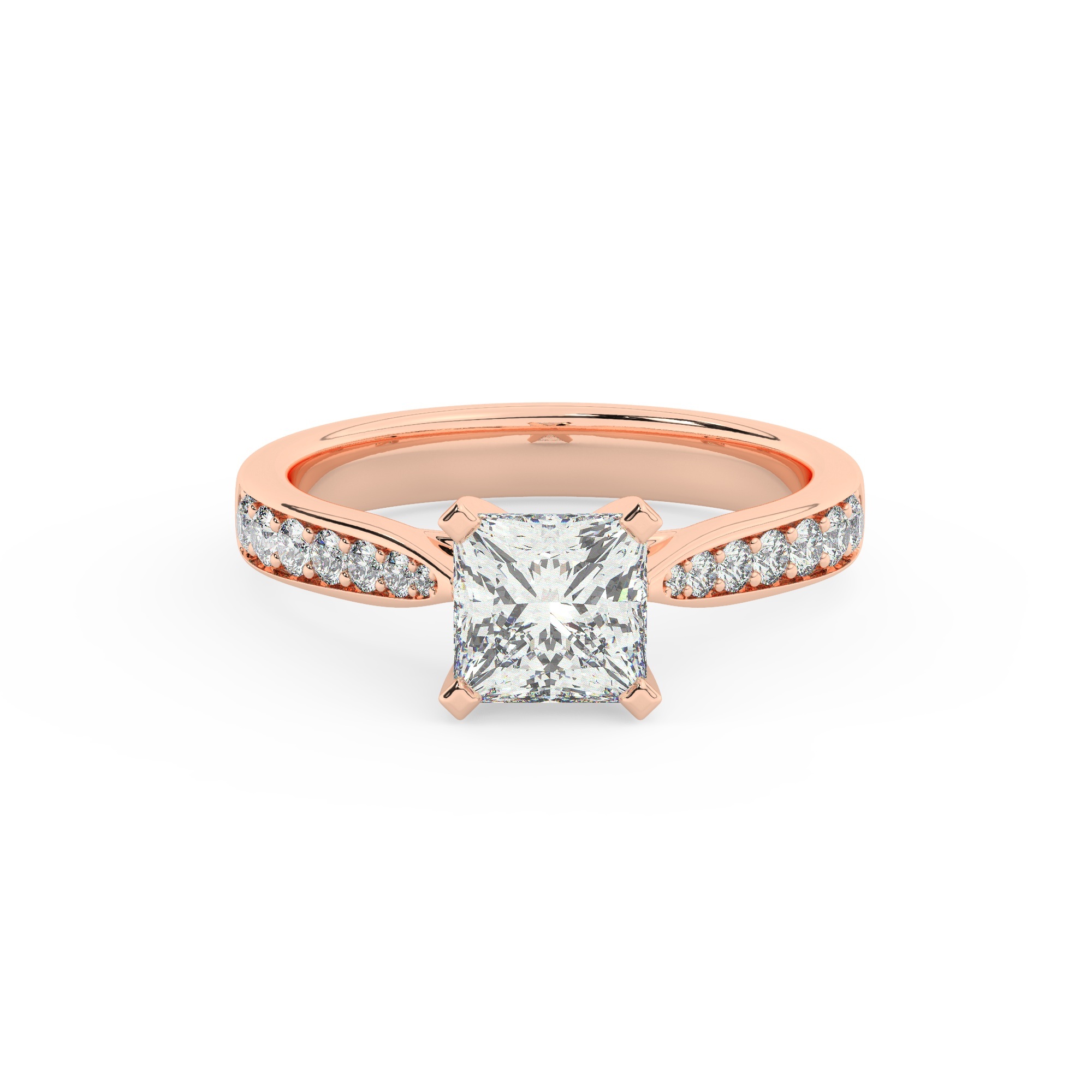 טבעת אירוסין סוליטר וזירקונים בצדדים דגם 50017 זהב אדום רוזגולד 14 קראט במרכז זירקוניה 1.50 קראט בחיתוך פרינסס מסביב ובצדדים זירקונים בחיתוך עגול