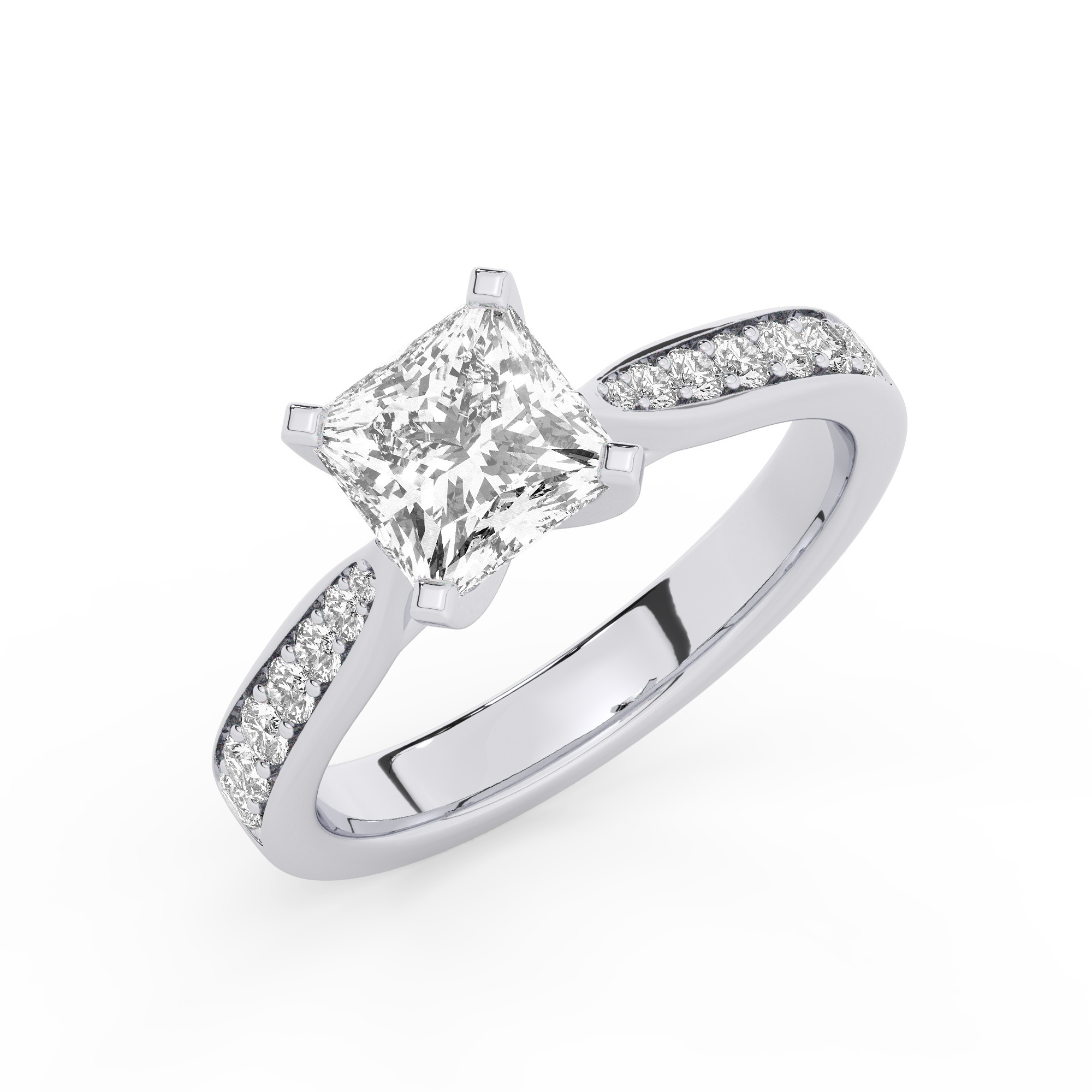 טבעת אירוסין סוליטר וזירקונים בצדדים דגם 50017 זהב לבן 14 קראט במרכז זירקוניה 1.50 קראט בחיתוך פרינסס מסביב ובצדדים זירקונים בחיתוך עגול