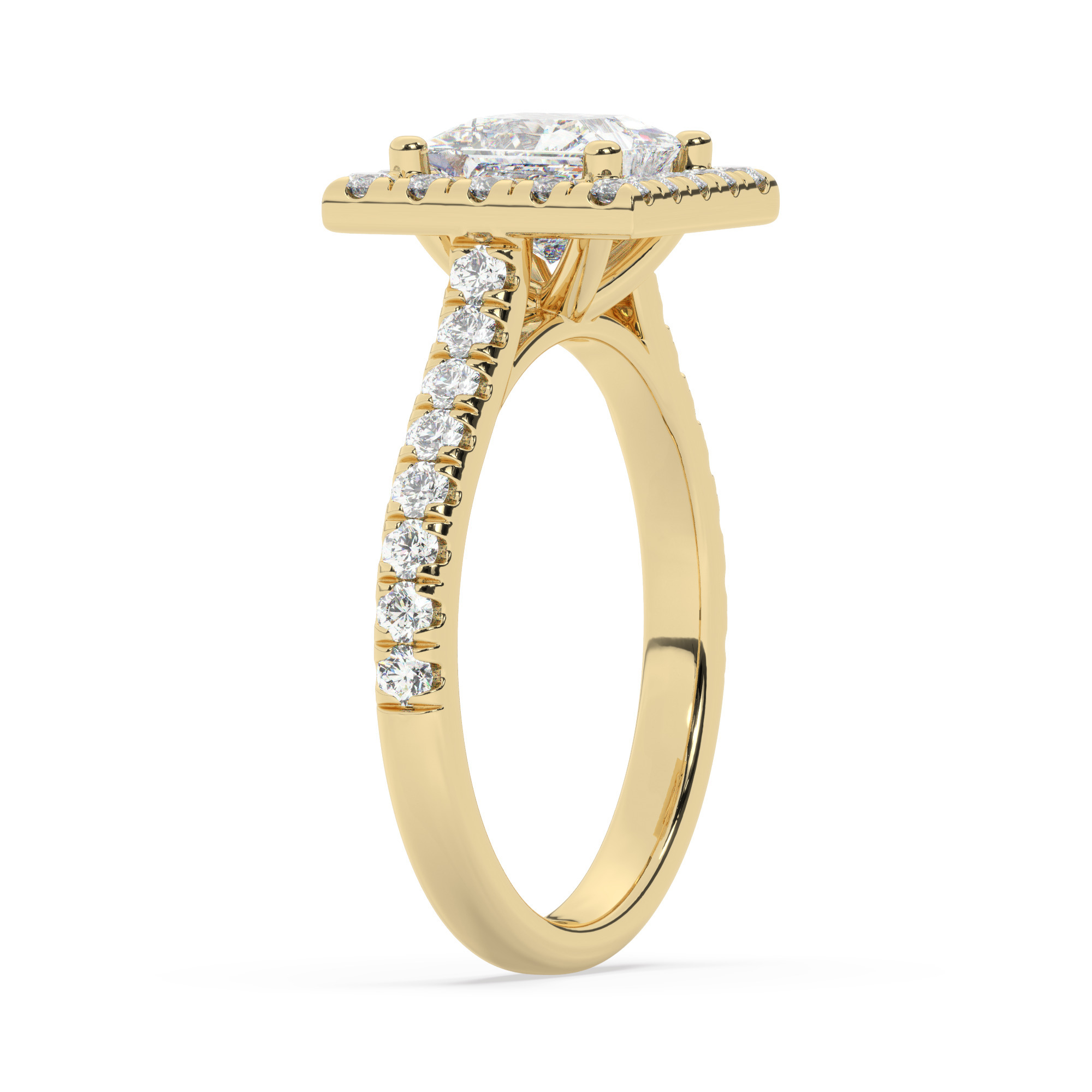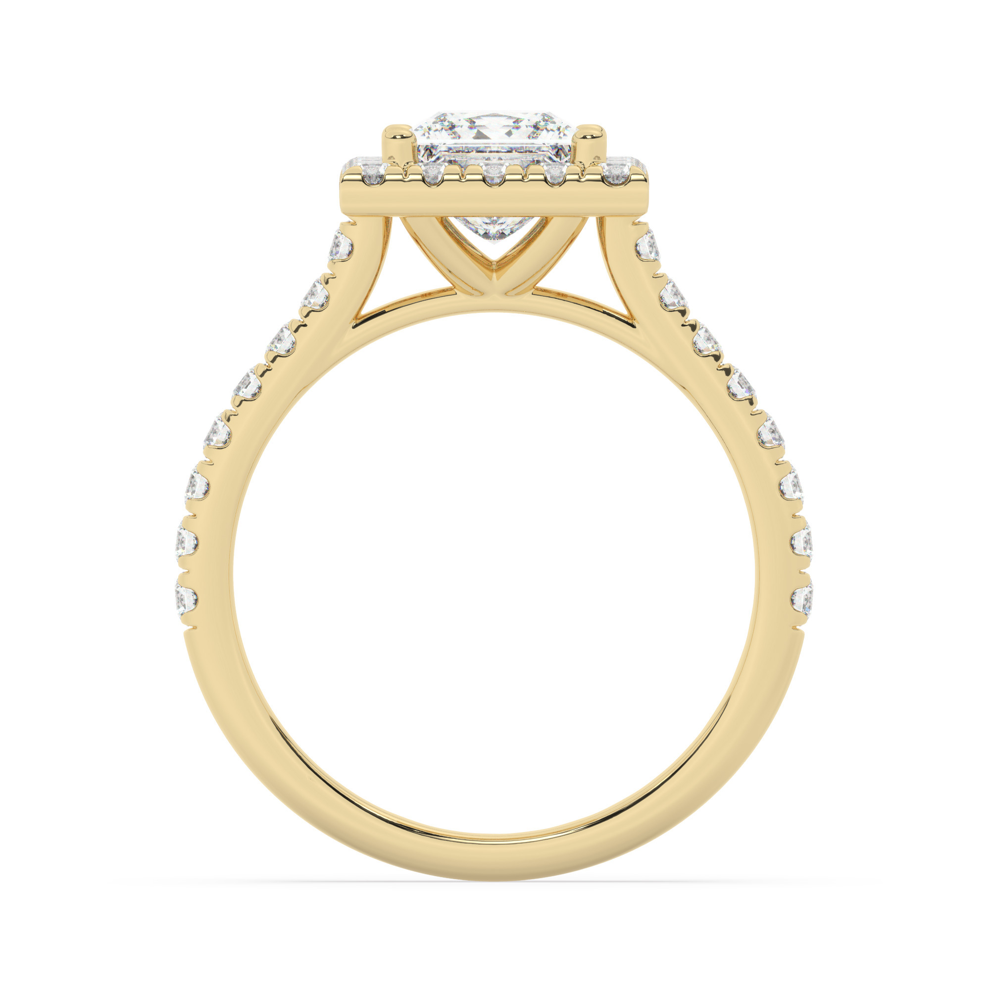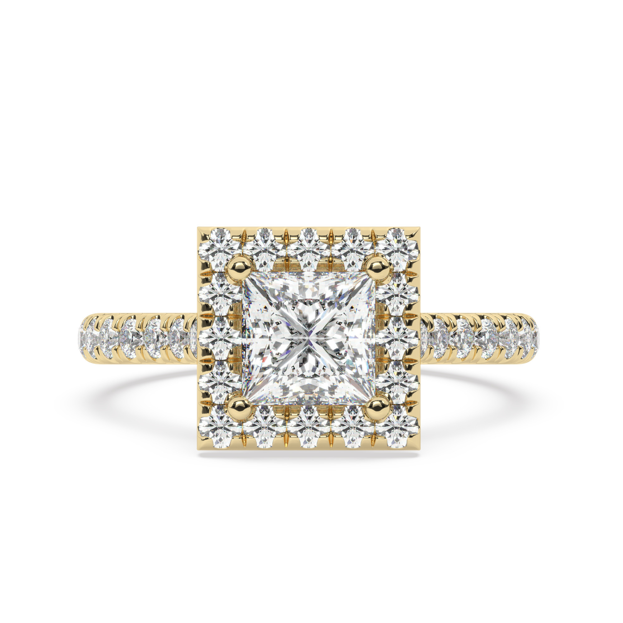 טבעת אירוסין היילו דגם 50026 זהב צהוב 14 קראט במרכז זירקוניה 1.50 קראט בחיתוך פרינסס מסביב ובצדדים זירקונים בחיתוך עגול
