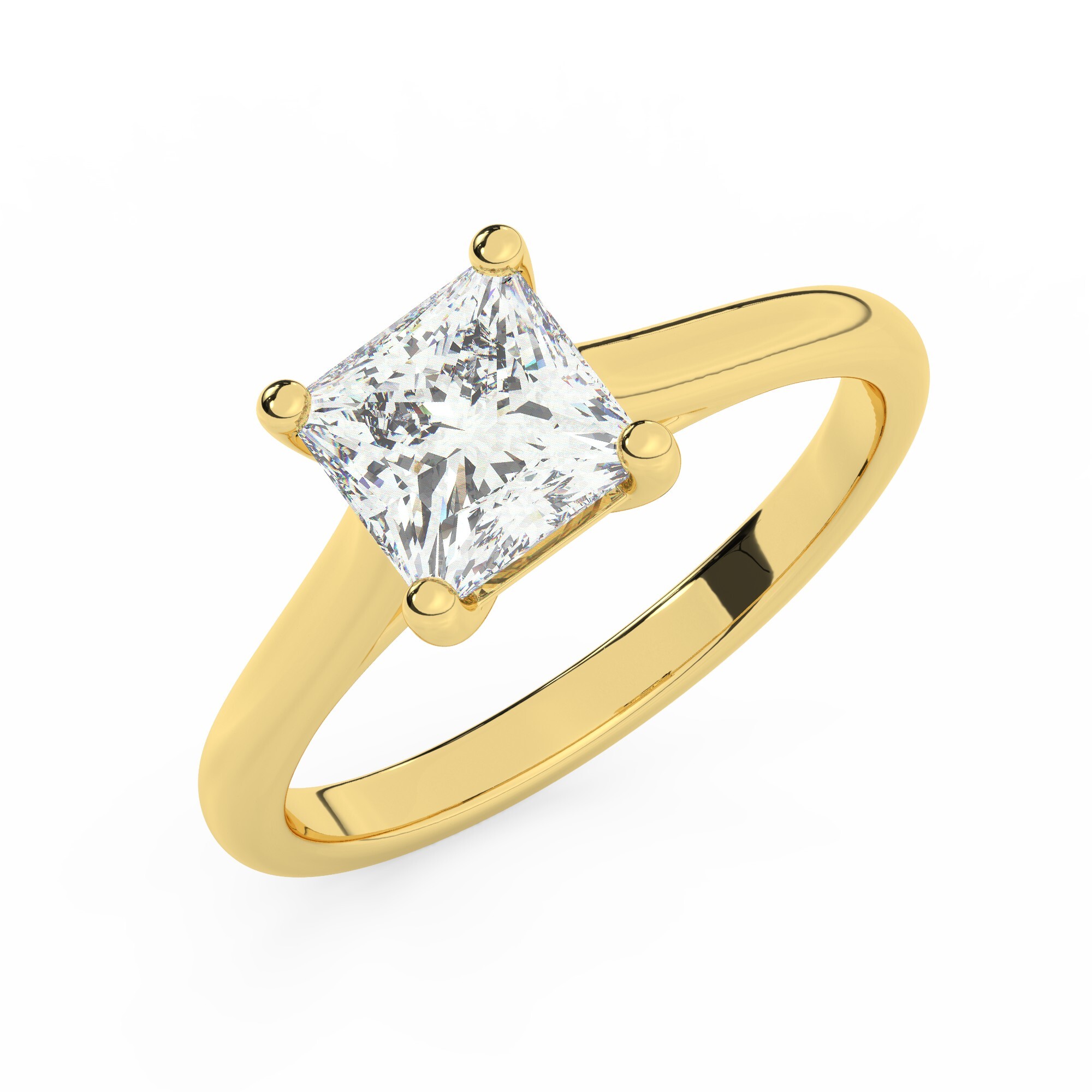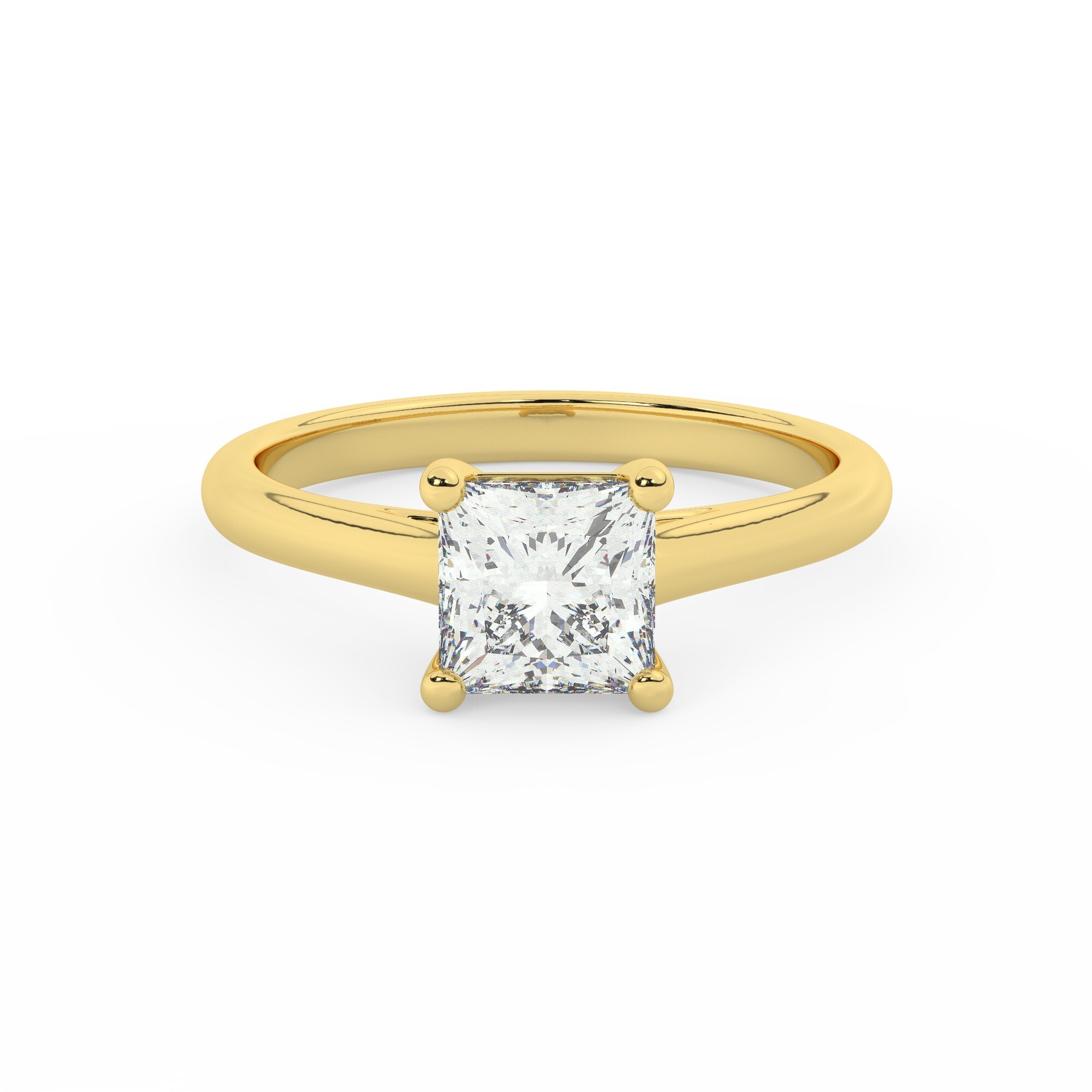 טבעת אירוסין סוליטר דגם 50029 זהב צהוב 14 קראט במרכז זירקוניה במשקל כולל של 2 קראט בחיתוך פרינסס עם תעודה גמולוגית