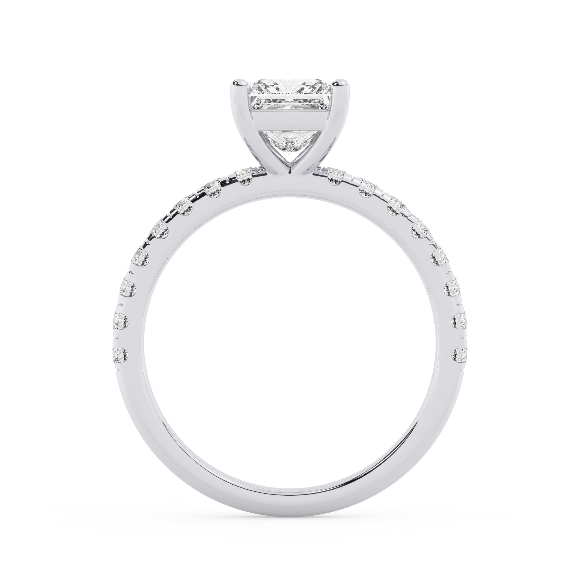 טבעת אירוסין סוליטר וזירקונים בצדדים דגם 50037 זהב לבן 14 קראט במרכז זירקוניה 2.50 קראט בחיתוך פרינסס מסביב ובצדדים זירקונים בחיתוך עגול