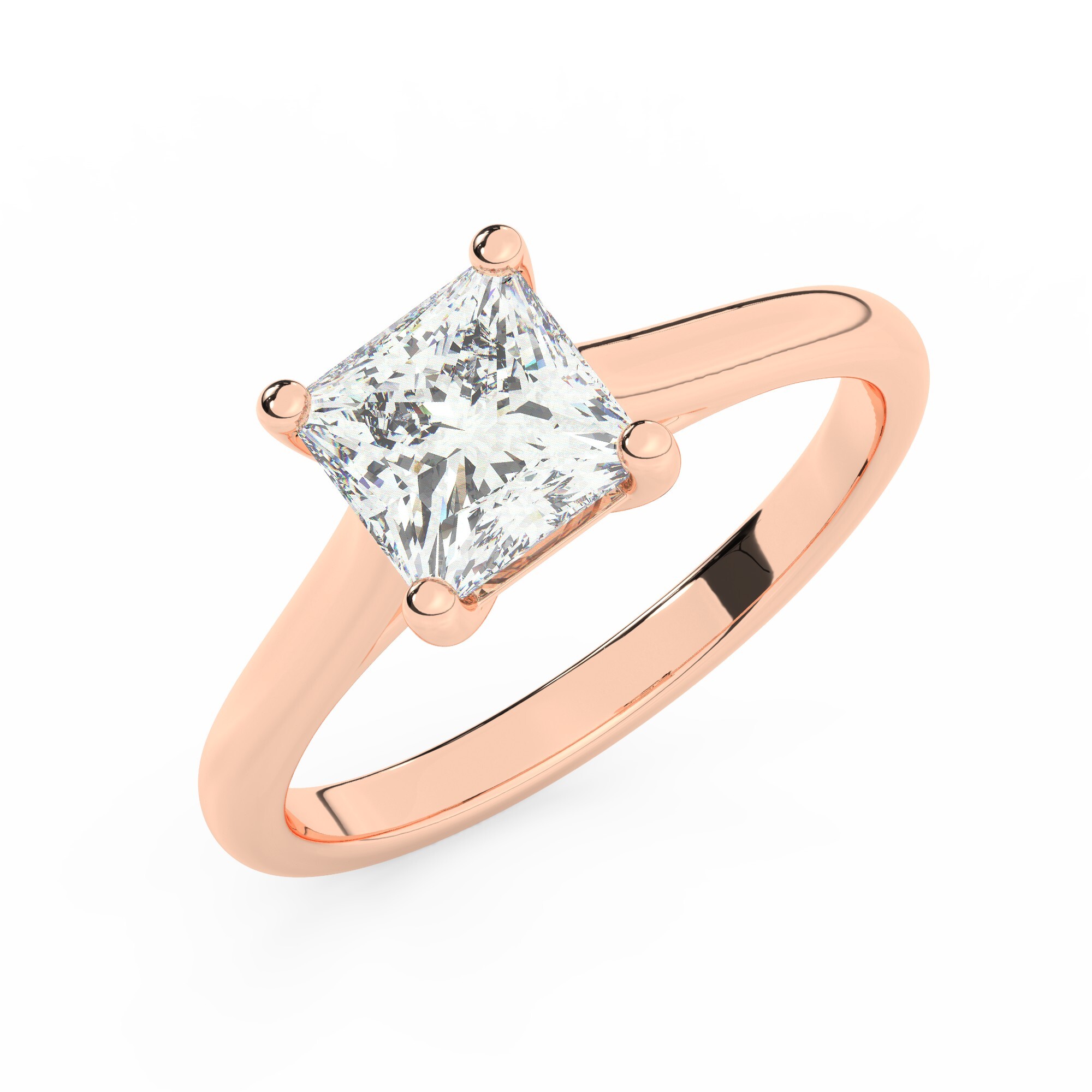 טבעת אירוסין סוליטר דגם 50029 זהב אדום רוזגולד 14 קראט במרכז זירקוניה במשקל כולל של 3 קראט בחיתוך פרינסס עם תעודה גמולוגית