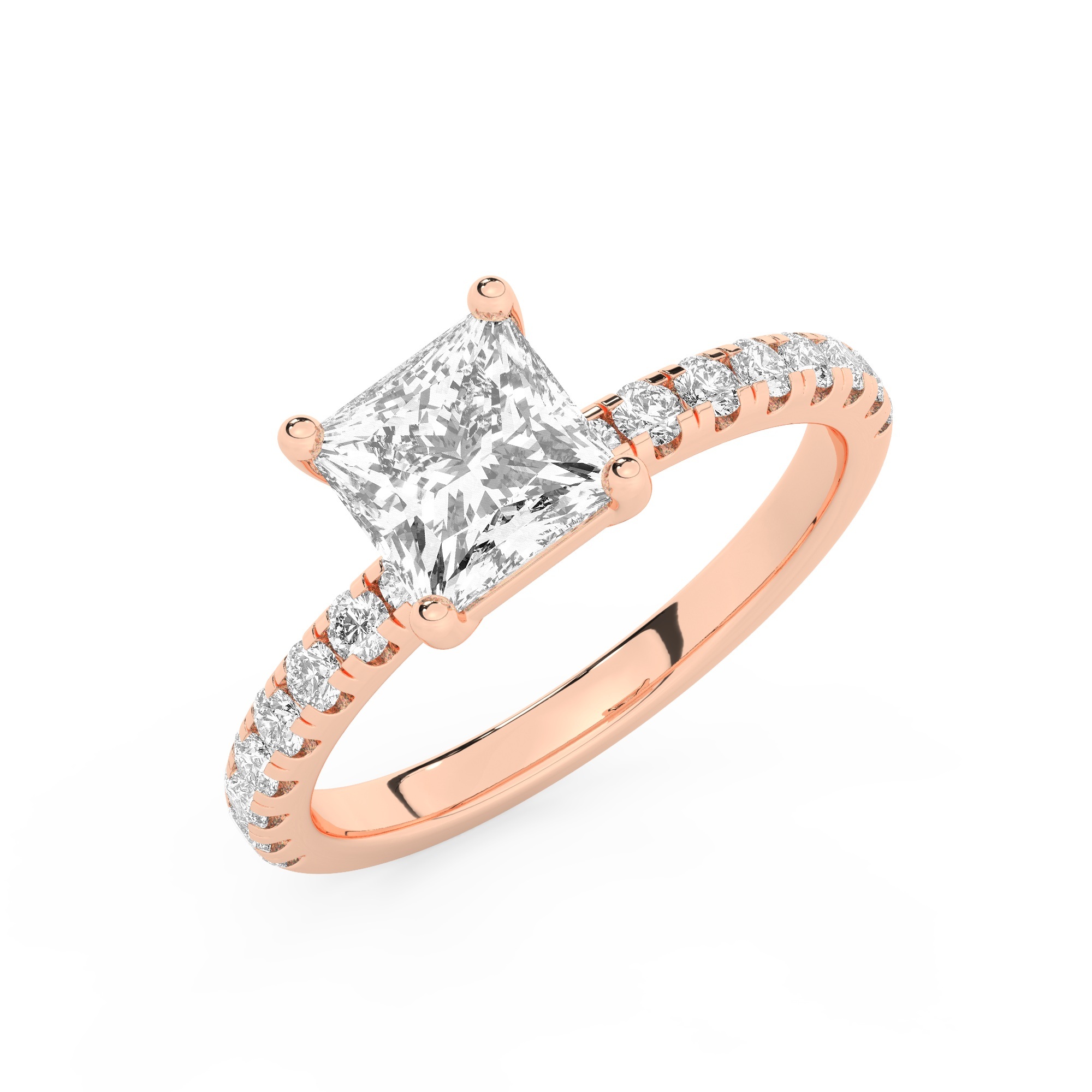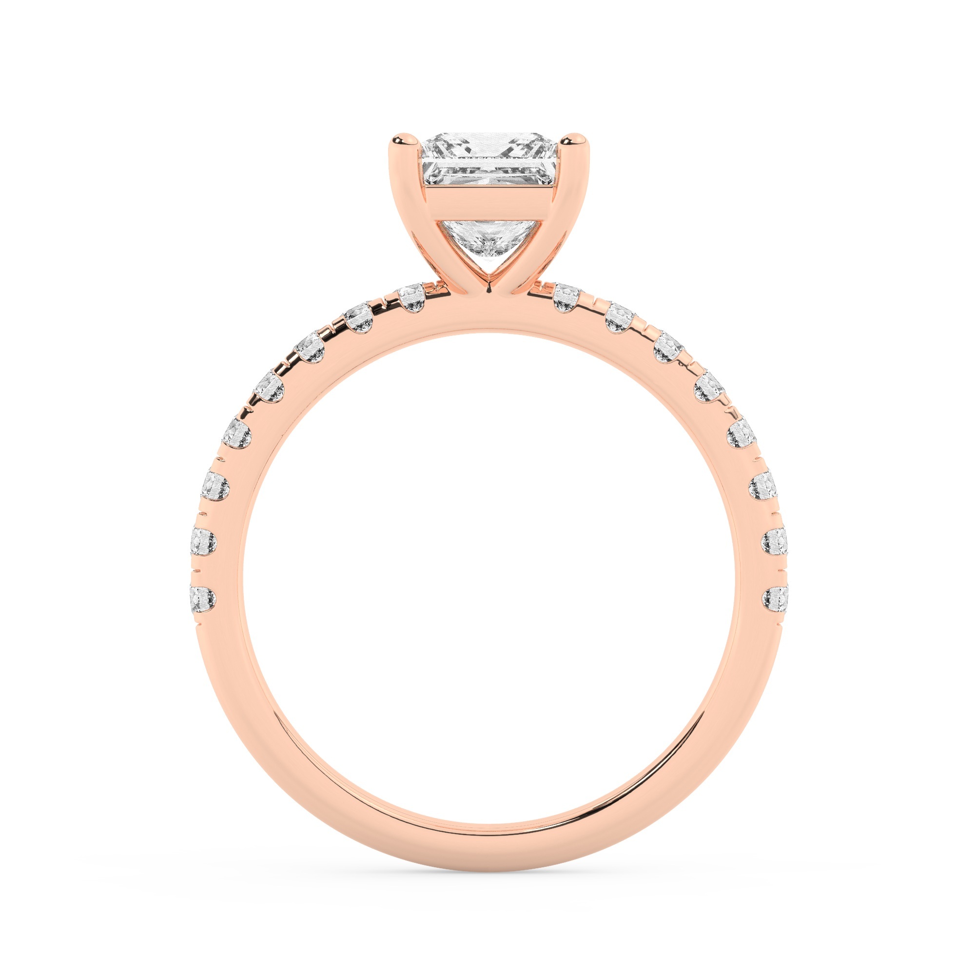 טבעת אירוסין סוליטר וזירקונים בצדדים דגם 50037 זהב אדום רוזגולד 14 קראט במרכז זירקוניה 3 קראט בחיתוך פרינסס מסביב ובצדדים זירקונים בחיתוך עגול