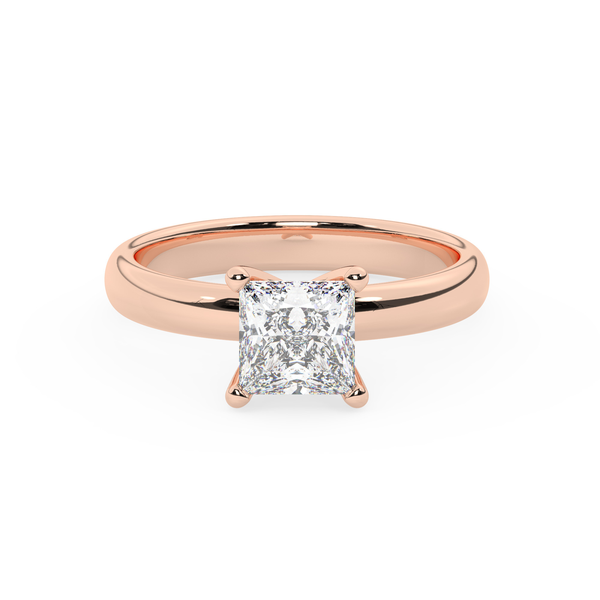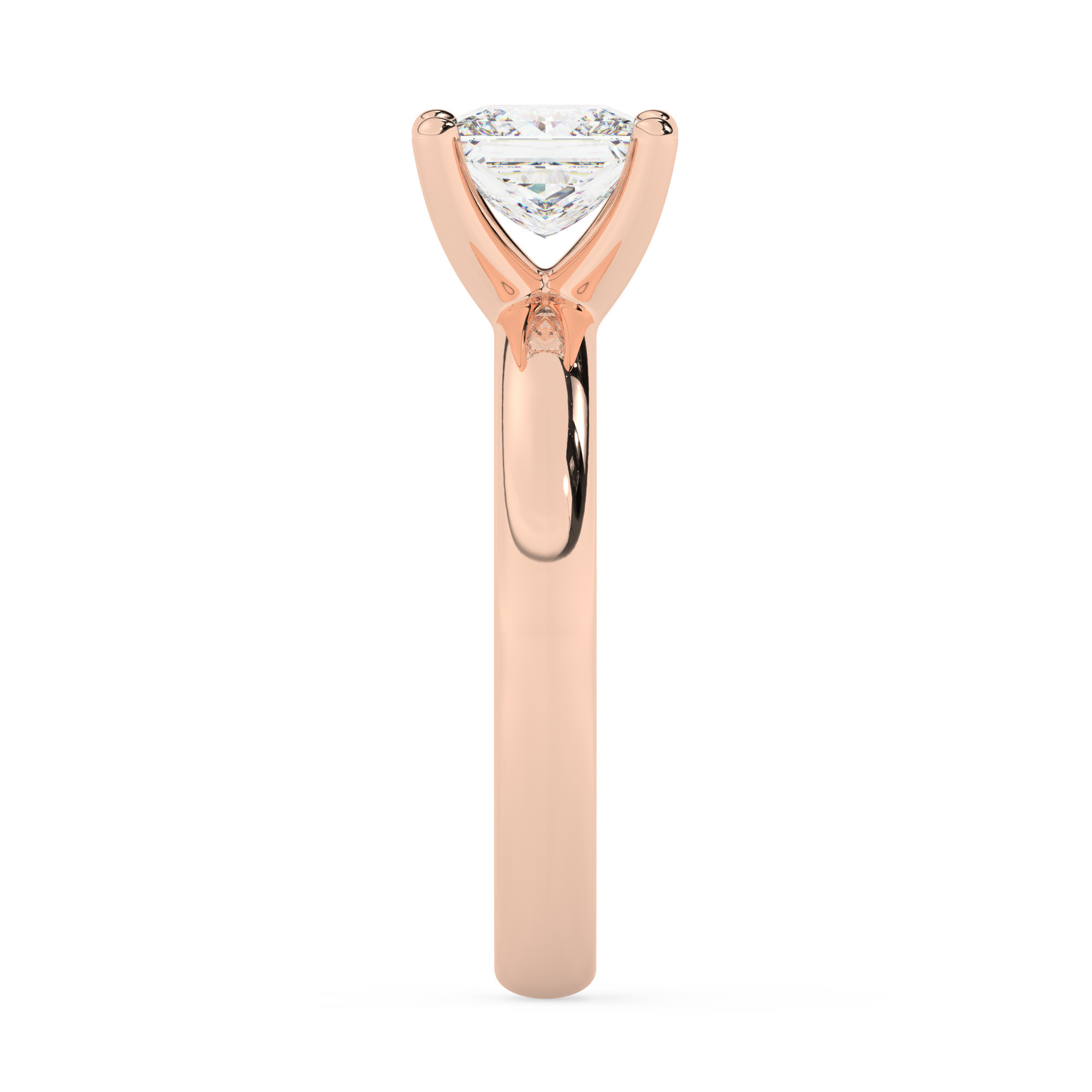 טבעת אירוסין סוליטר דגם 50047 זהב אדום רוזגולד 14 קראט במרכז זירקוניה במשקל כולל של 3 קראט בחיתוך פרינסס עם תעודה גמולוגית