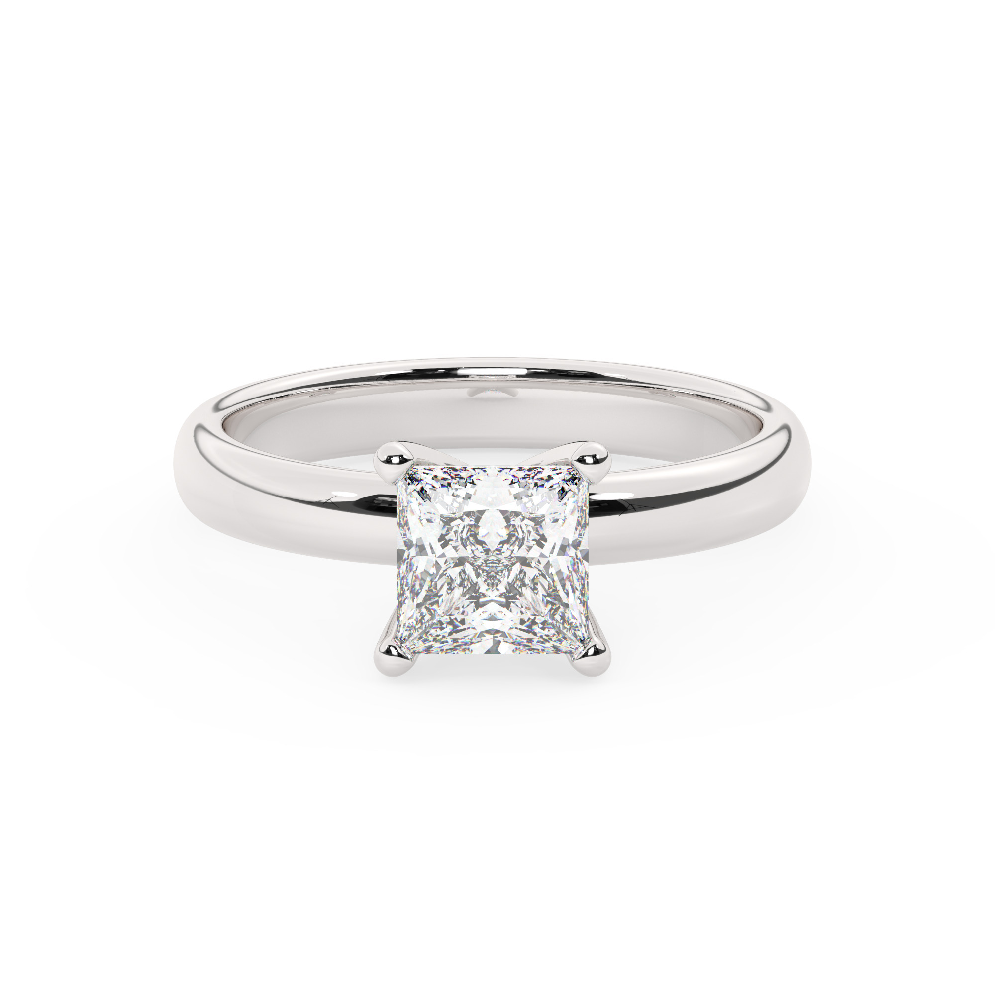 טבעת אירוסין סוליטר דגם 50047 זהב לבן 14 קראט במרכז זירקוניה במשקל כולל של 3 קראט בחיתוך פרינסס עם תעודה גמולוגית