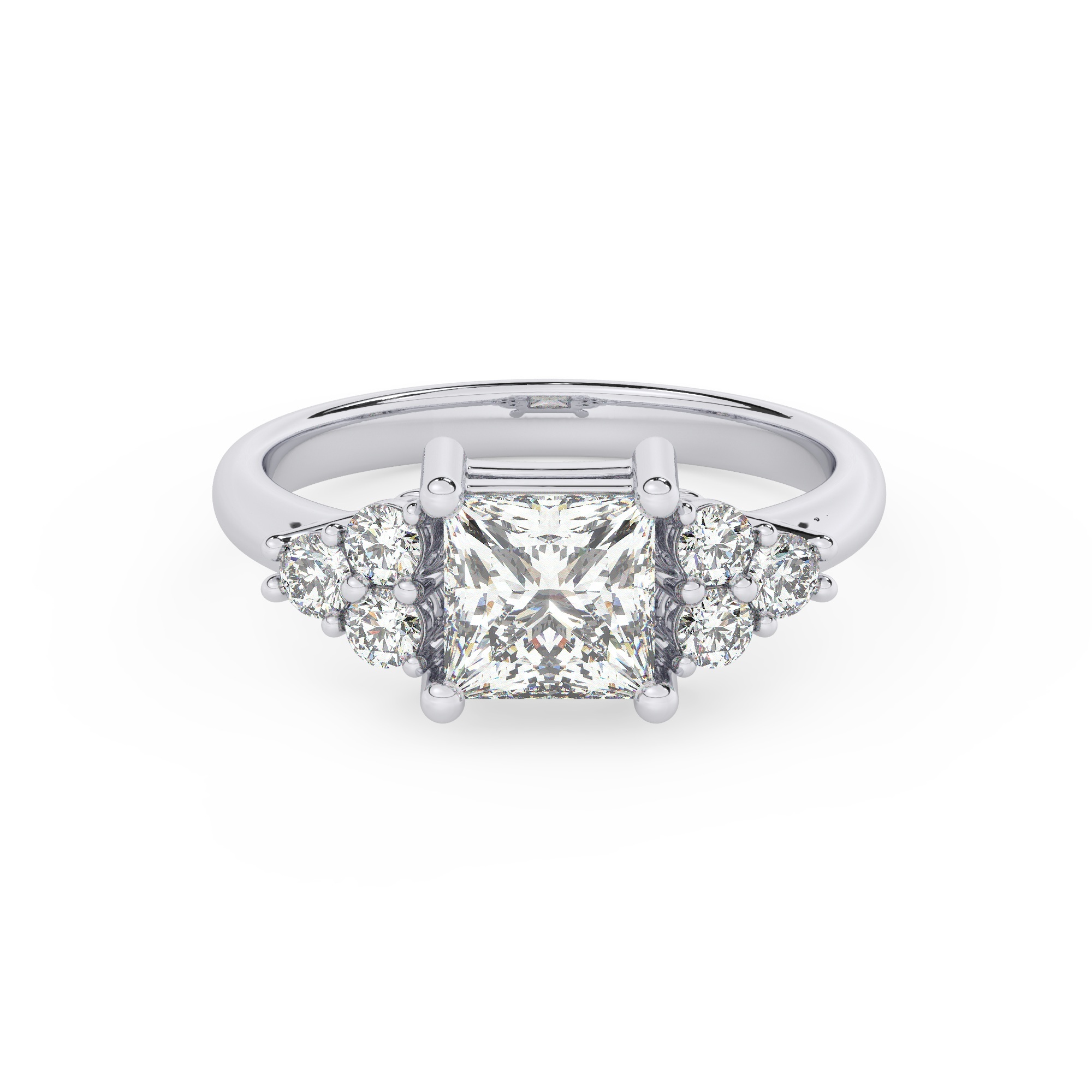 טבעת אירוסין סוליטר וזירקונים בצדדים דגם 50041 זהב לבן 14 קראט במרכז זירקוניה 4 קראט בחיתוך פרינסס מסביב ובצדדים זירקונים בחיתוך עגול