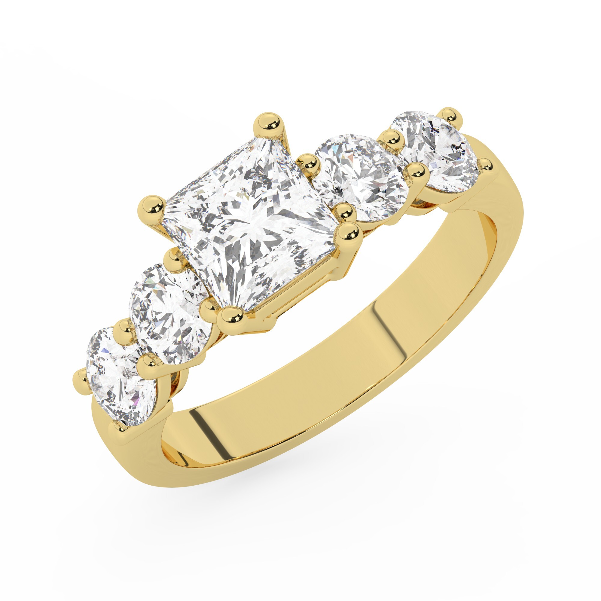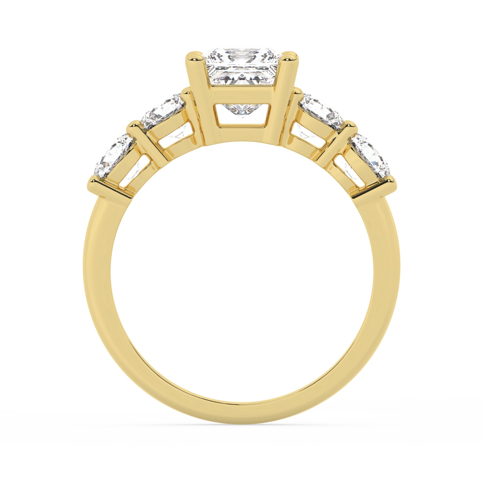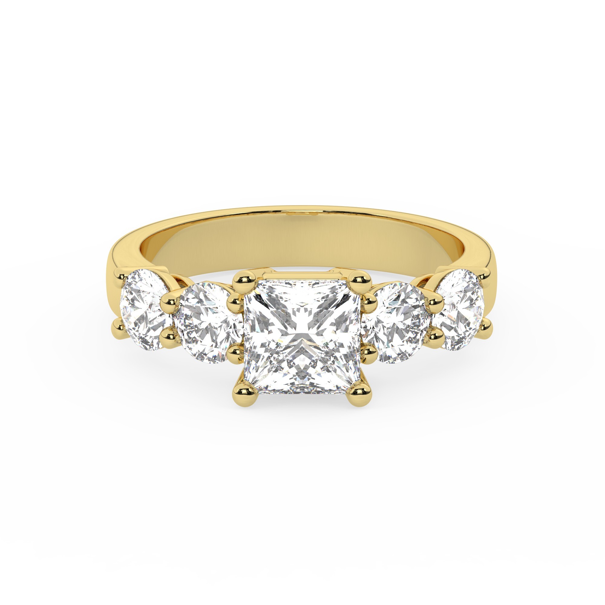טבעת אירוסין סוליטר וזירקונים בצדדים דגם 50030 כסף מצופה זהב צהוב במרכז זירקוניה 4 קראט בחיתוך פרינסס מסביב ובצדדים זירקונים בחיתוך עגול