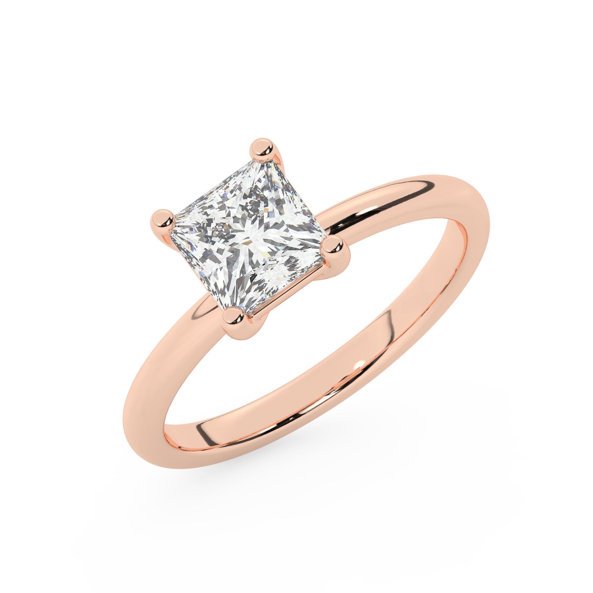 טבעת אירוסין סוליטר דגם 50016 זהב אדום רוזגולד 14 קראט במרכז זירקוניה במשקל כולל של 5 קראט בחיתוך פרינסס עם תעודה גמולוגית