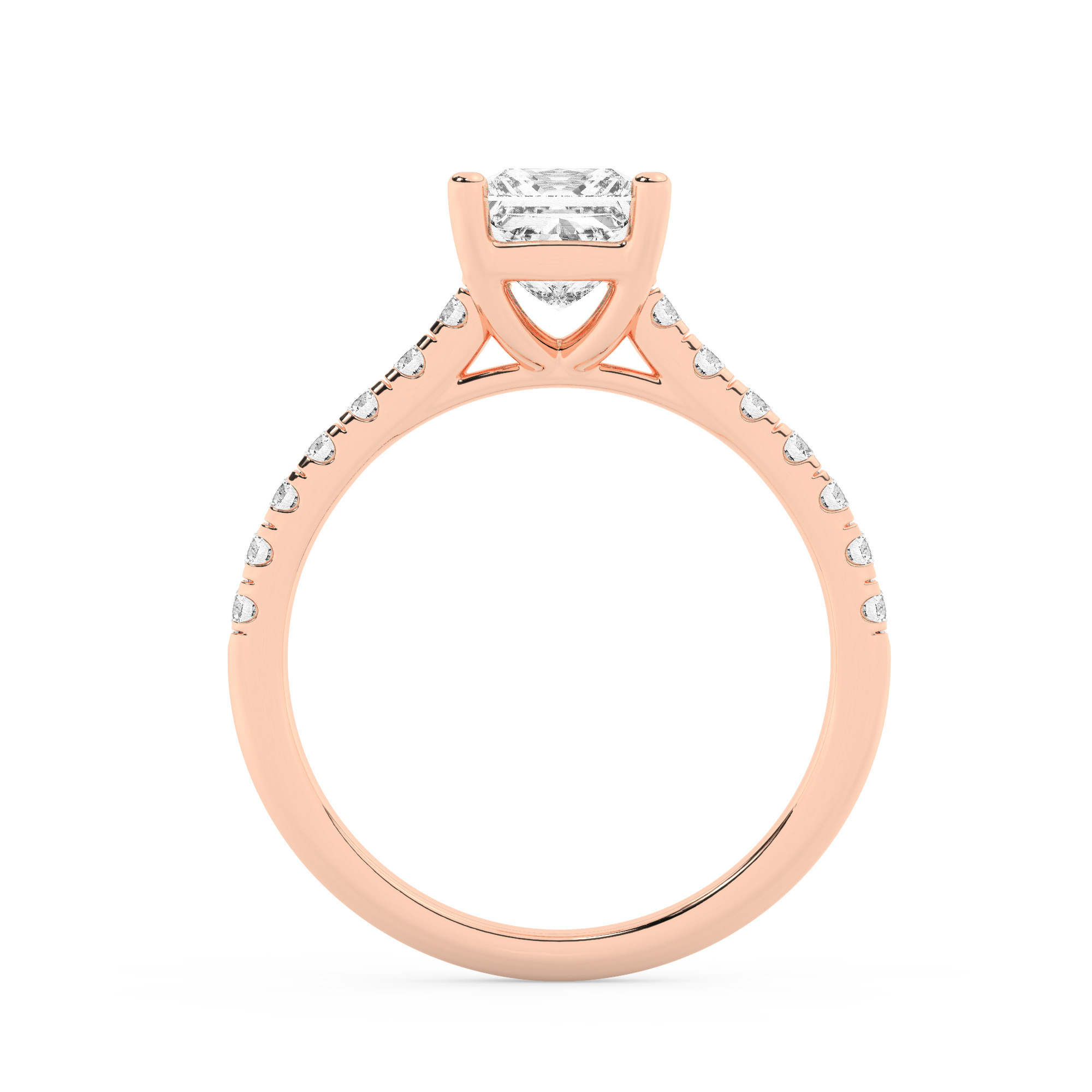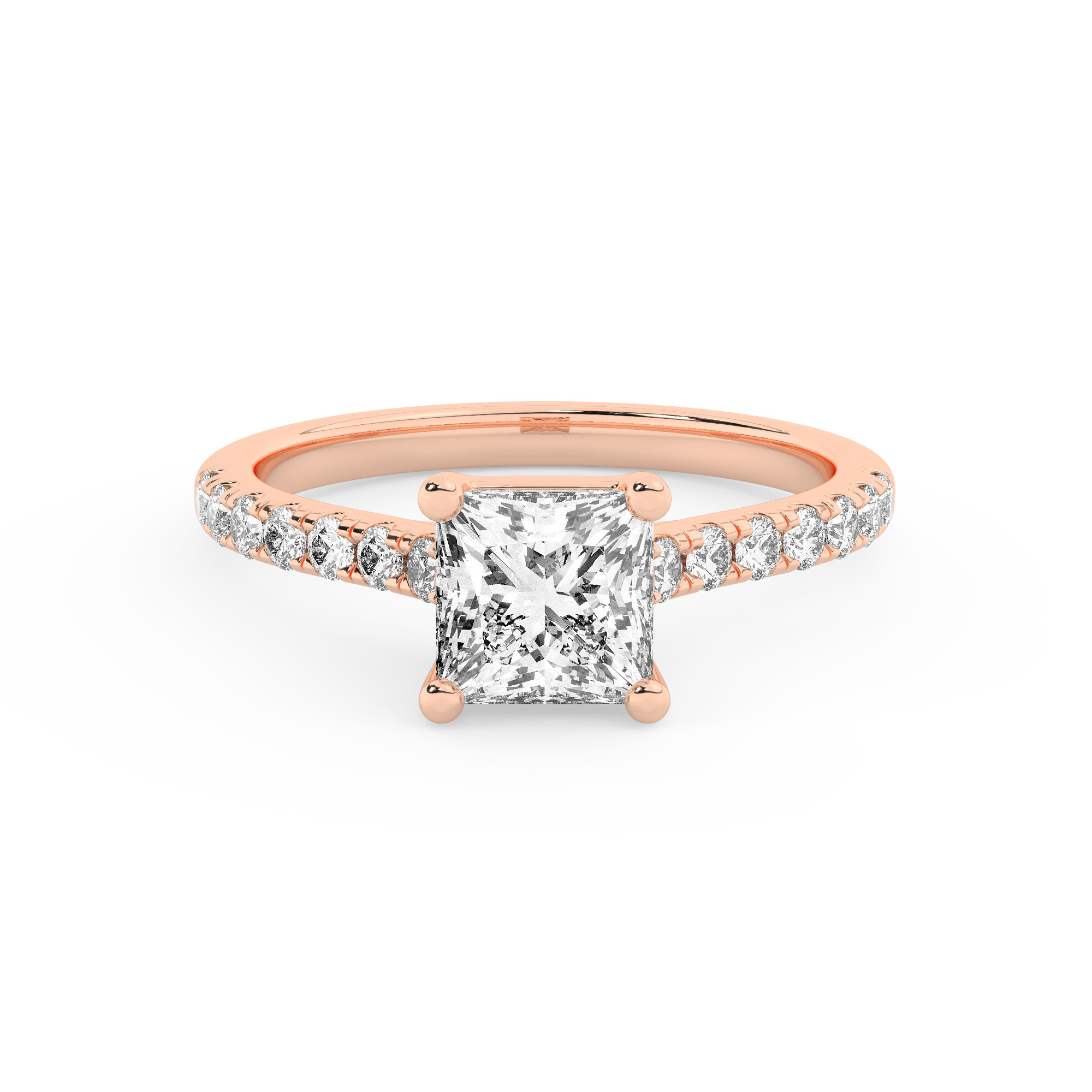 טבעת אירוסין סוליטר ויהלומים בצדדים דגם 50019 זהב אדום רוזגולד 14 קראט במרכז זירקוניה 5 קראט בחיתוך פרינסס מסביב ובצדדים זירקונים בחיתוך עגול