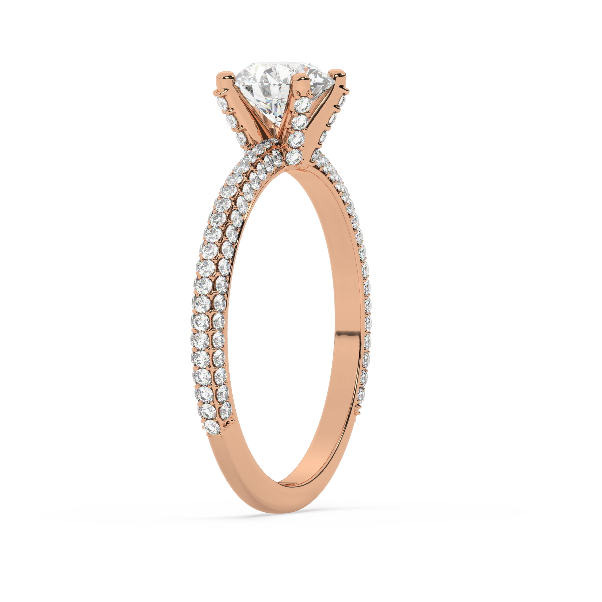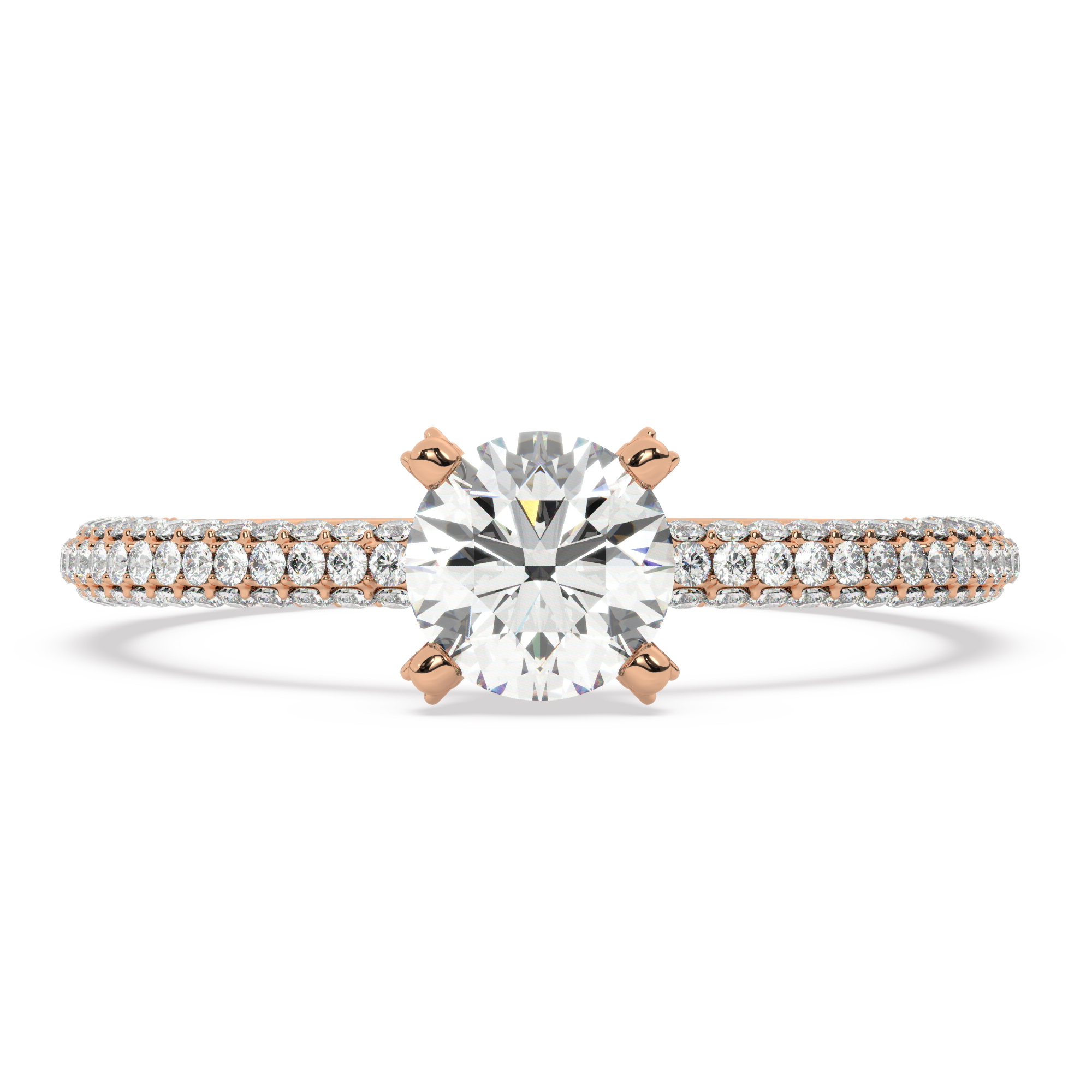 טבעת אירוסין יוקרתית ומושלמת העשויה זהב אדום 14 קראט בסגנון סוליטר קלאסי עם 117 אבני זירקוניה נוצצות במשקל כולל של 0.90 קראט ואבן מרכזית עגולה במשקל 0.50 קראט בצבע D וניקיון VVS1.