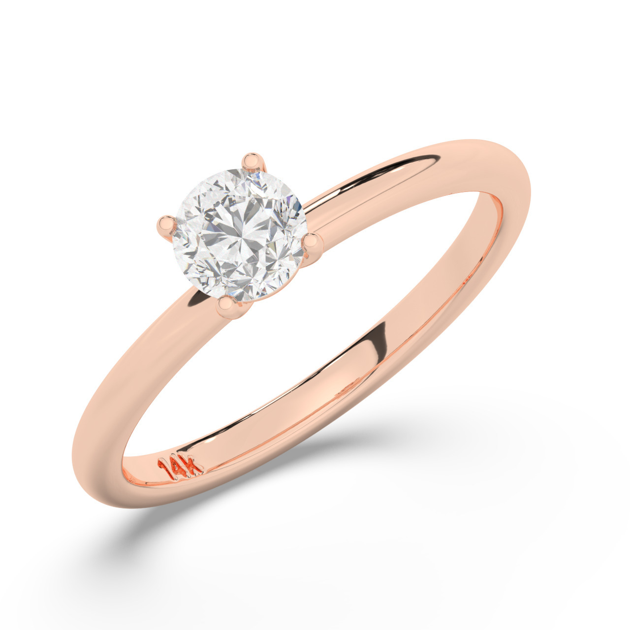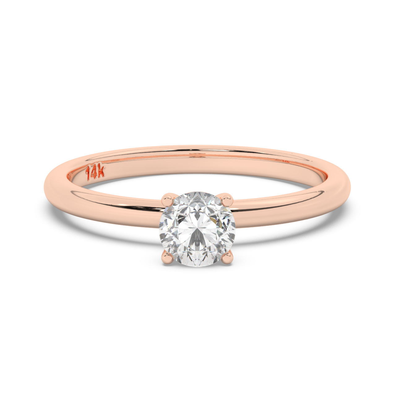 טבעת אירוסין סוליטר דגם 50016 זהב אדום רוזגולד 14 קראט במרכז זירקוניה במשקל כולל של 0.50 קראט בחיתוך עגול עם תעודה גמולוגית