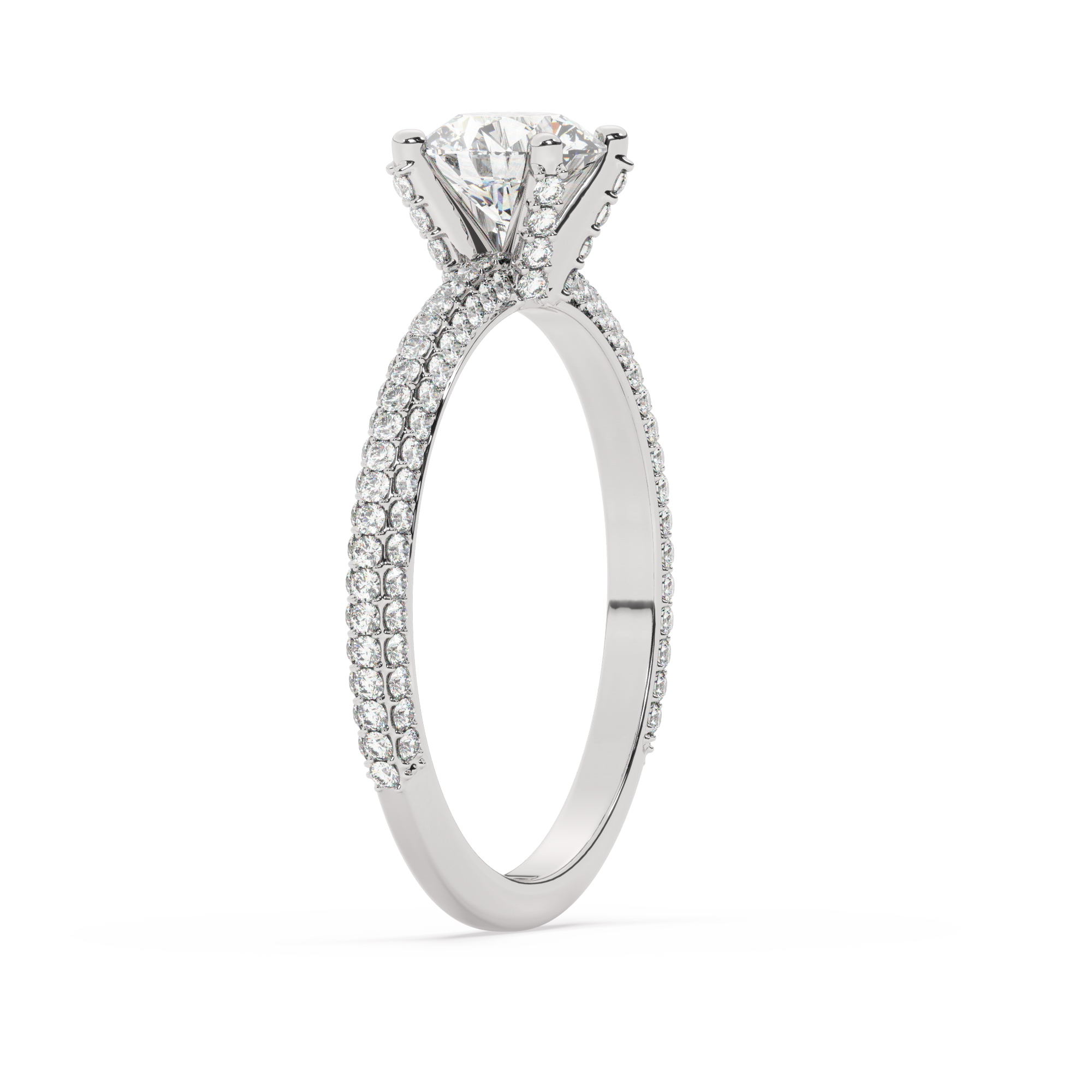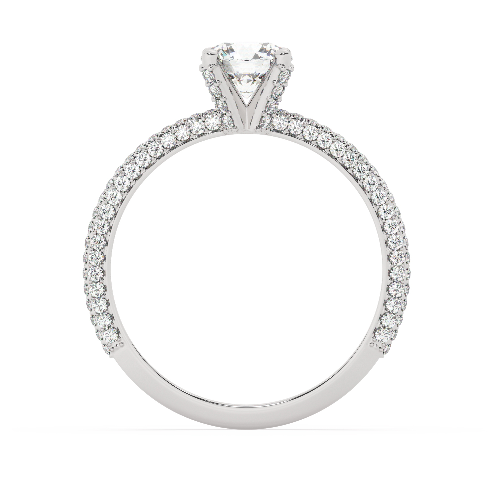 טבעת אירוסין סוליטר מרהיבה עשויה זהב לבן 14 קראט, עם אבן מרכזית מרשימה במשקל 0.50 קראט וסך כולל של 117 אבני זירקוניה נוצצות במשקל כולל של 0.90 קראט.