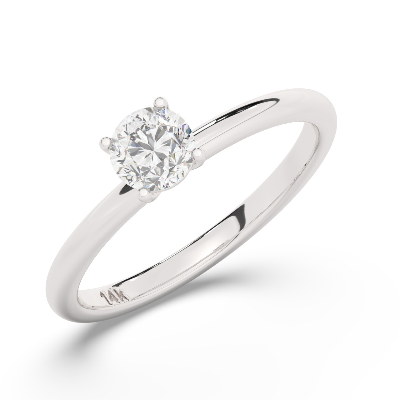 טבעת אירוסין סוליטר דגם 50016 זהב לבן 14 קראט במרכז זירקוניה במשקל כולל של 0.50 קראט בחיתוך עגול עם תעודה גמולוגית