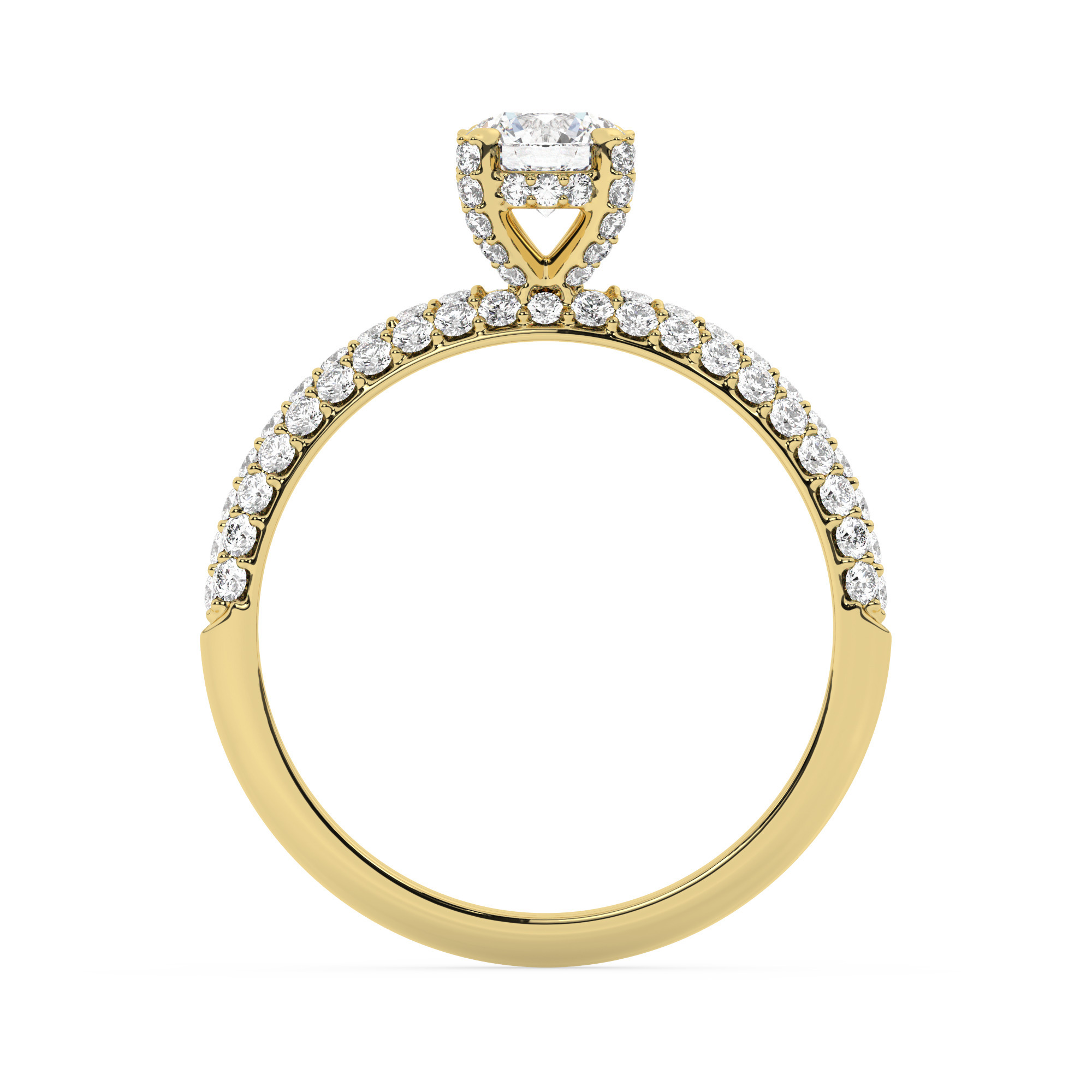 50% הנחהטבעת אירוסין היילו דגם ליטל זהב צהוב 14 קראט במרכז יהלום מעבדה 1 קראט מסביבו ובצדדים שורה של יהלומים עם תעודה גמולוגית אירופאית IGI טבעת הצעת נישואין