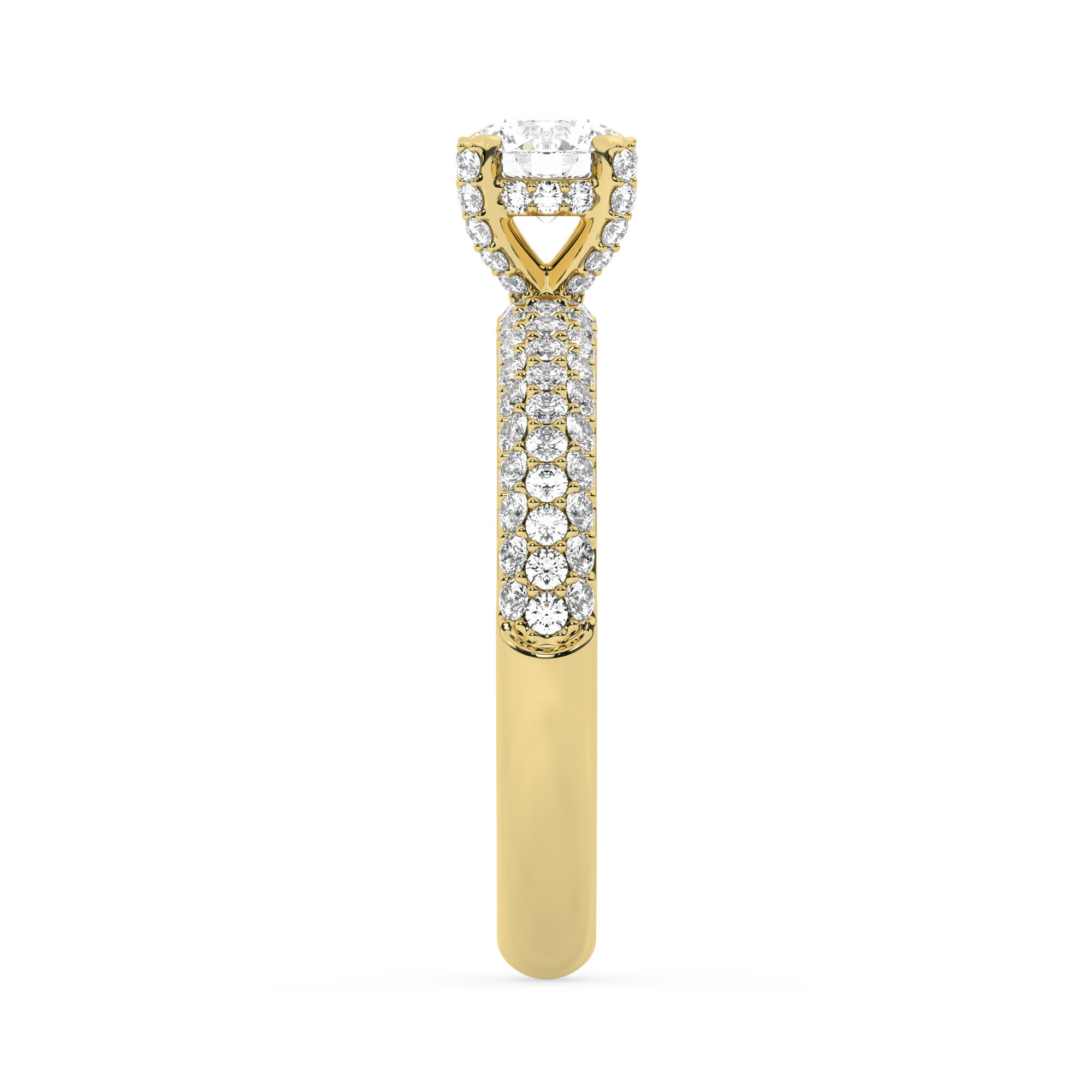 טבעת אירוסין יוקרתית בסגנון סוליטר עם 101 אבני זירקוניה עגולות בצידי הטבעת. עשויה זהב צהוב 14 קראט, שוקלת קראט אחד כולל, עם אבן מרכזית של 0.50 קראט, צבע D וניקיון VVS1. מגיעה עם תעודה גמולוגית.