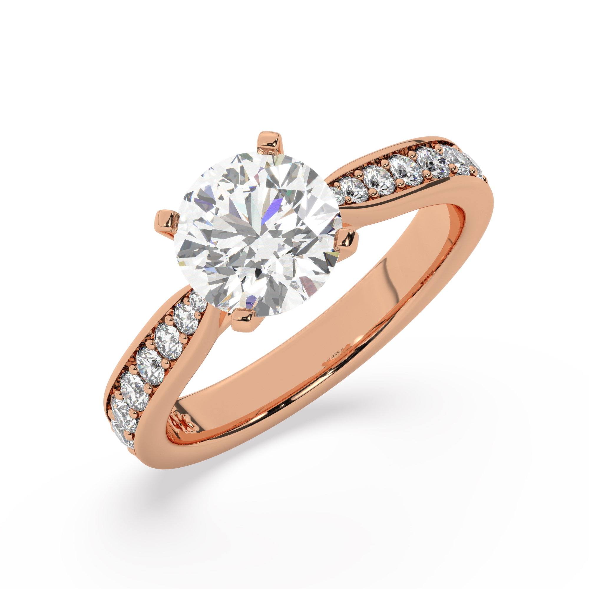 טבעת אירוסין סוליטר וזירקונים בצדדים דגם 50017 כסף מצופה זהב אדום רוזגולד במרכז זירקוניה 0.50 קראט בחיתוך עגול מסביב ובצדדים זירקונים בחיתוך עגול