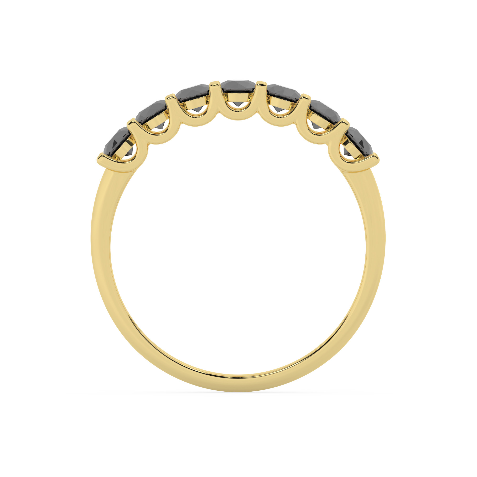 בטבעת משובצים 7 זירקונים שחורים בחיתוך עגול במשקל כולל של 0.60 קרט עם תעודה גמולוגית.